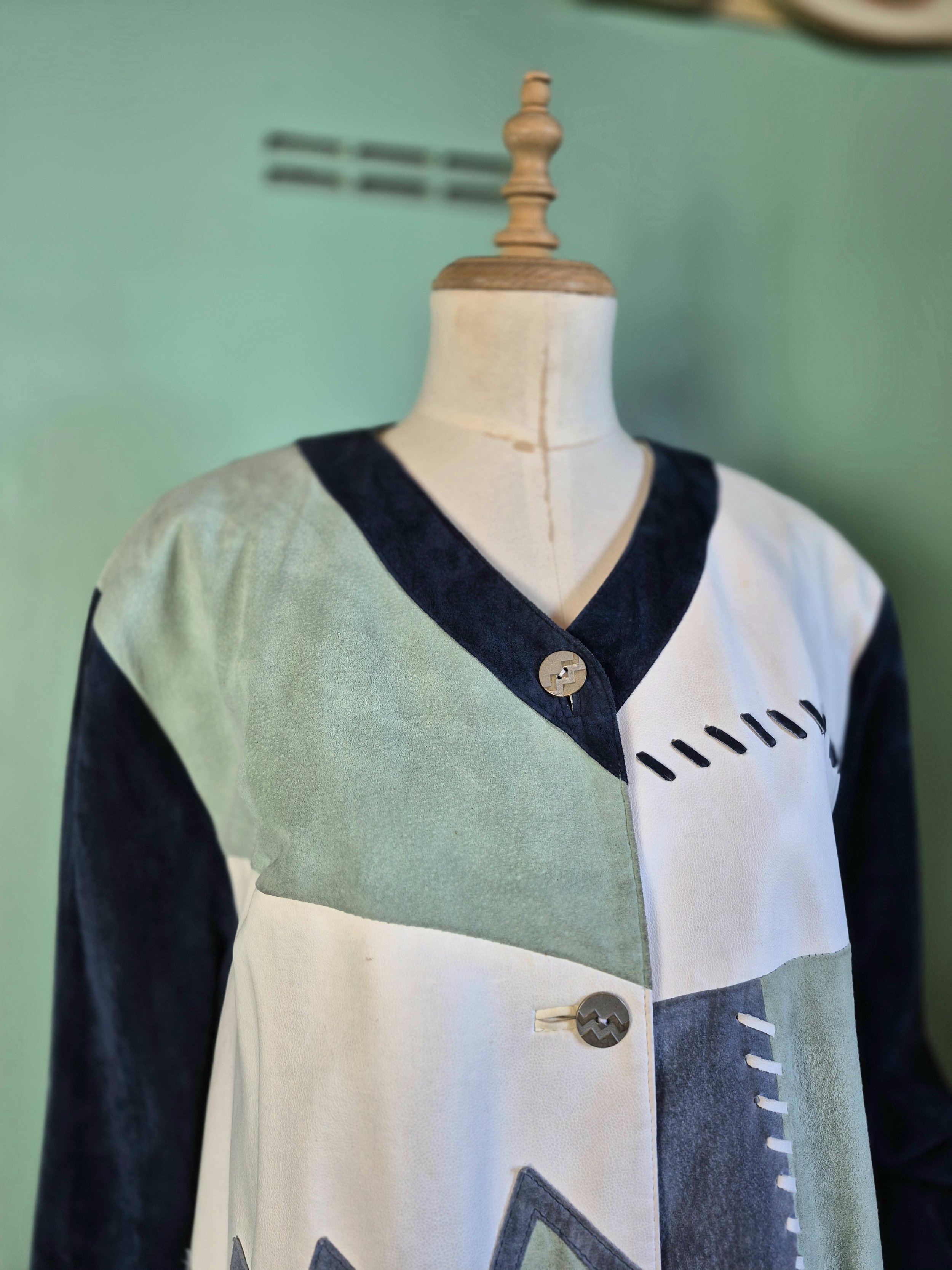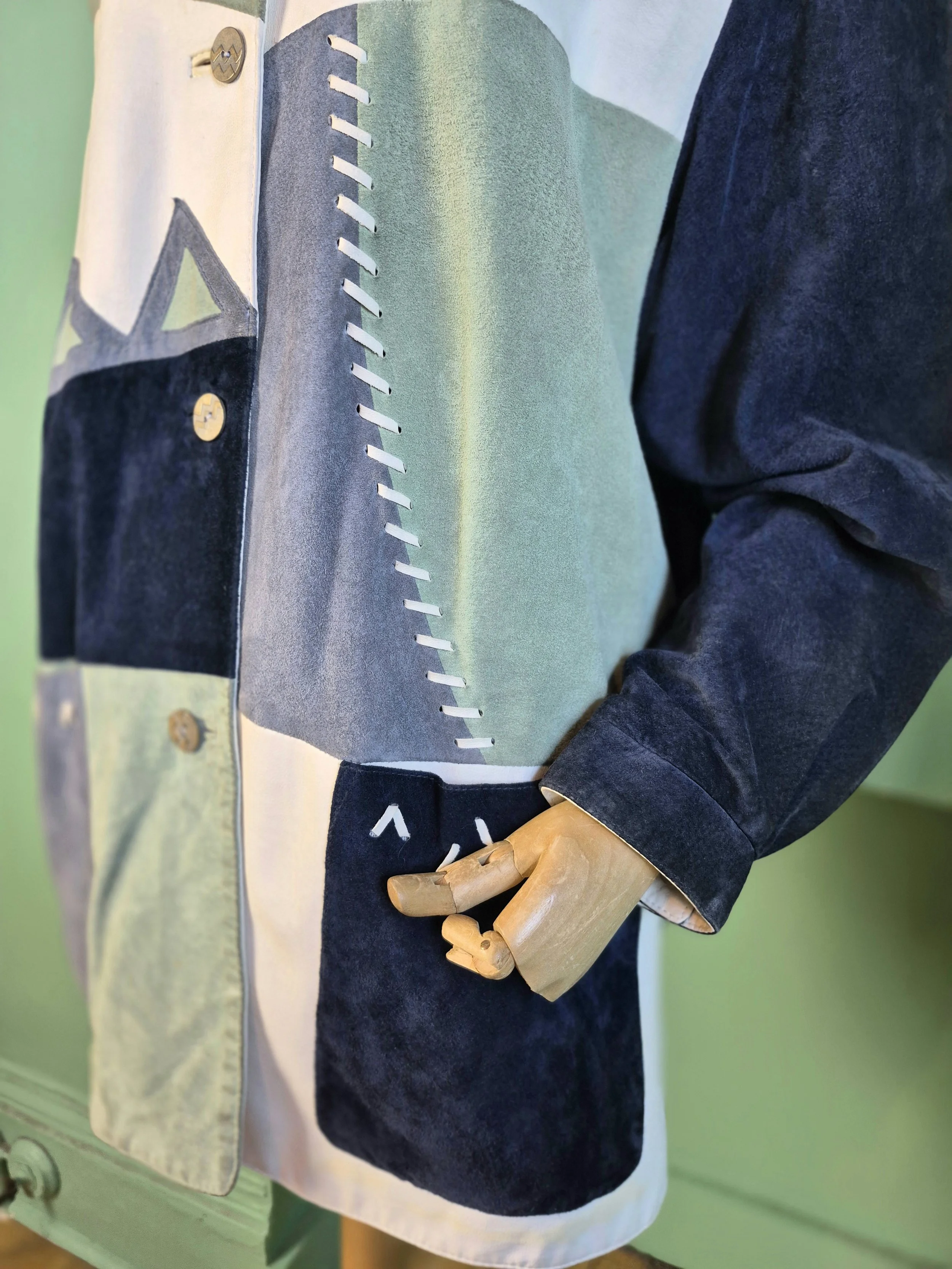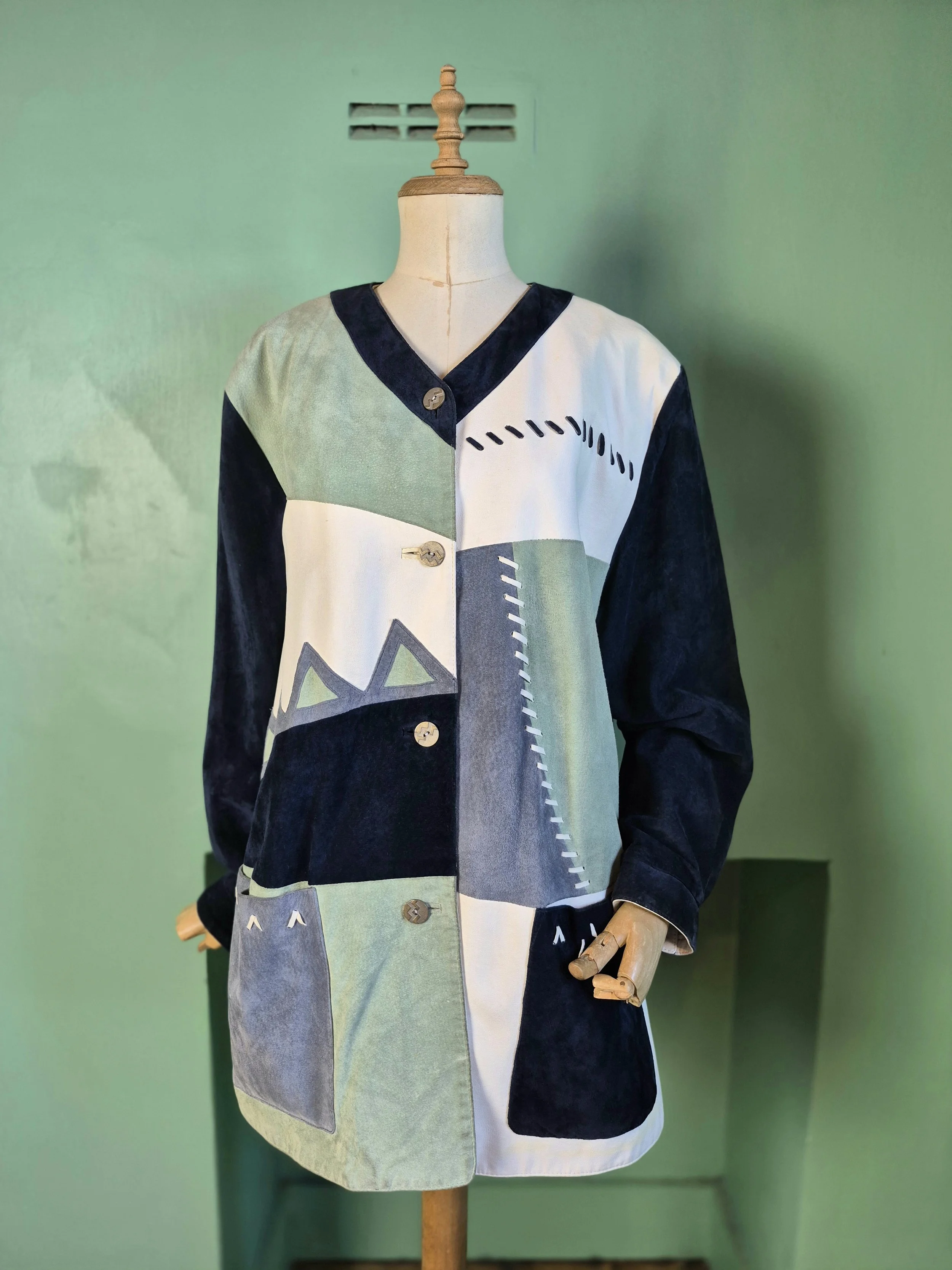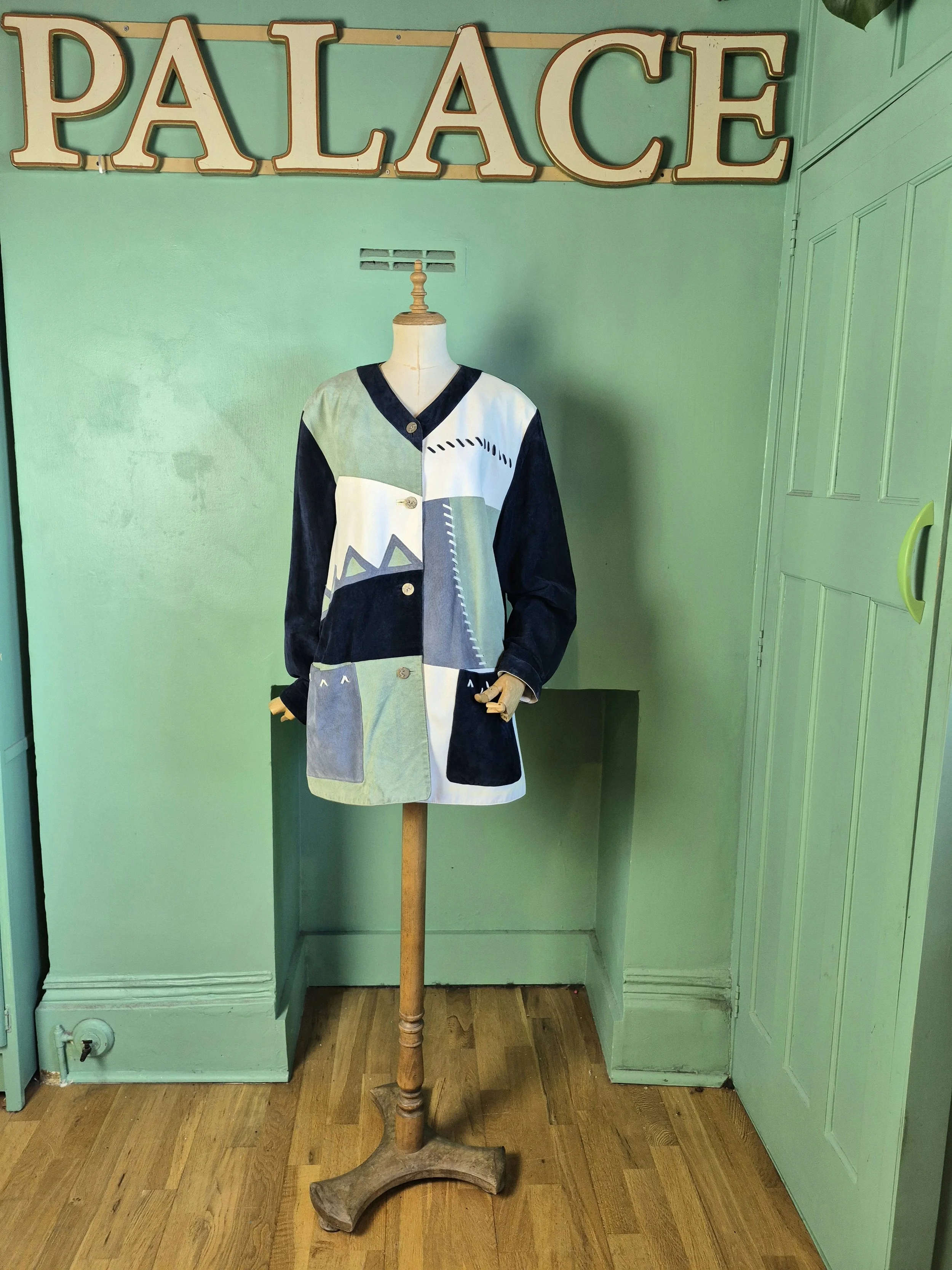 So cute. Lightweight patch colour block jacket. Drewstring to waist, zip and popper front.