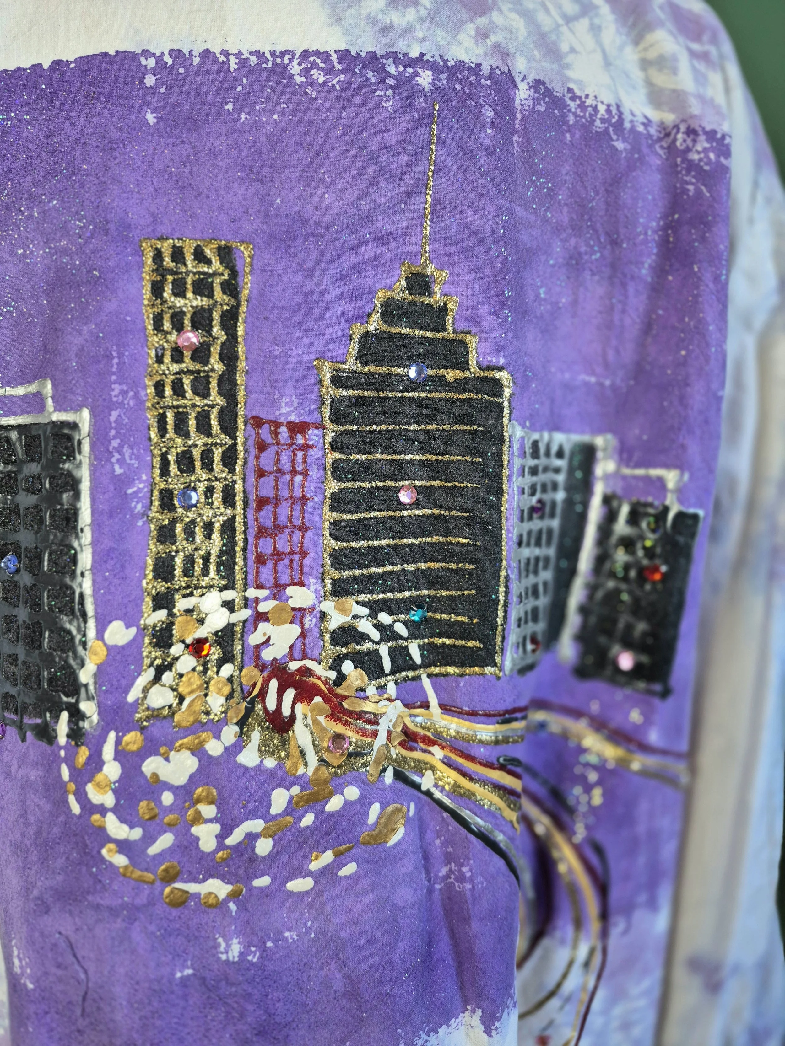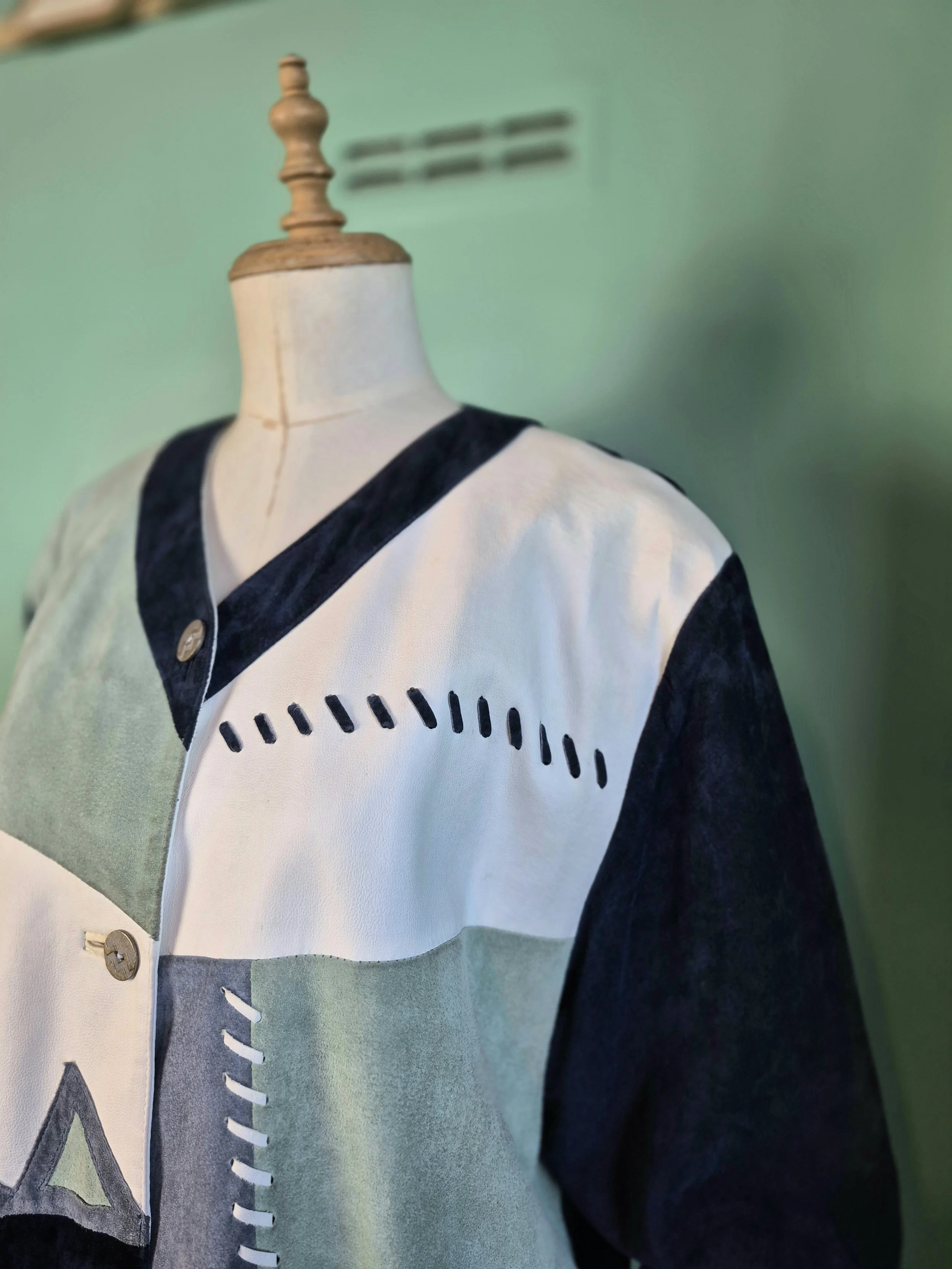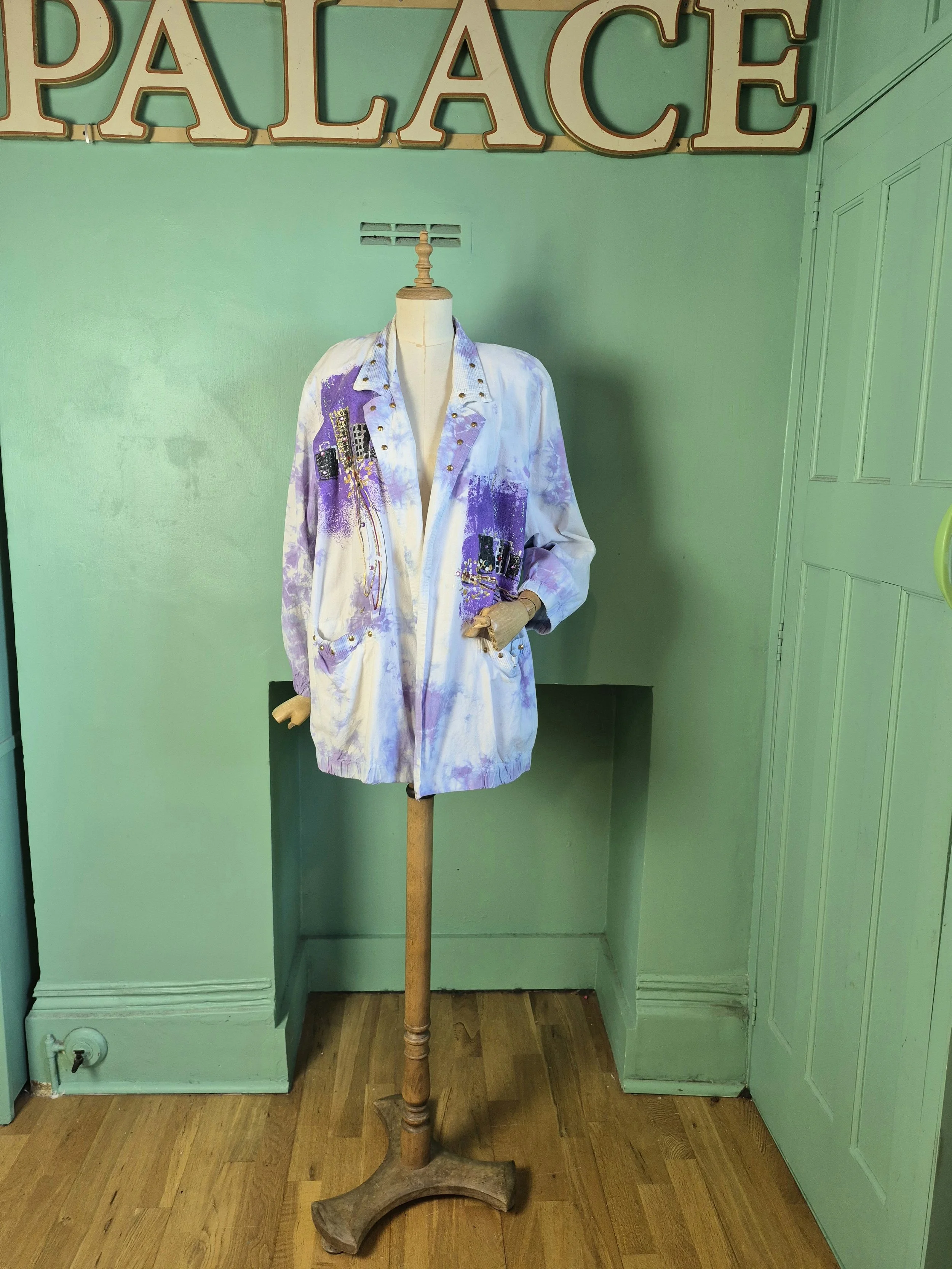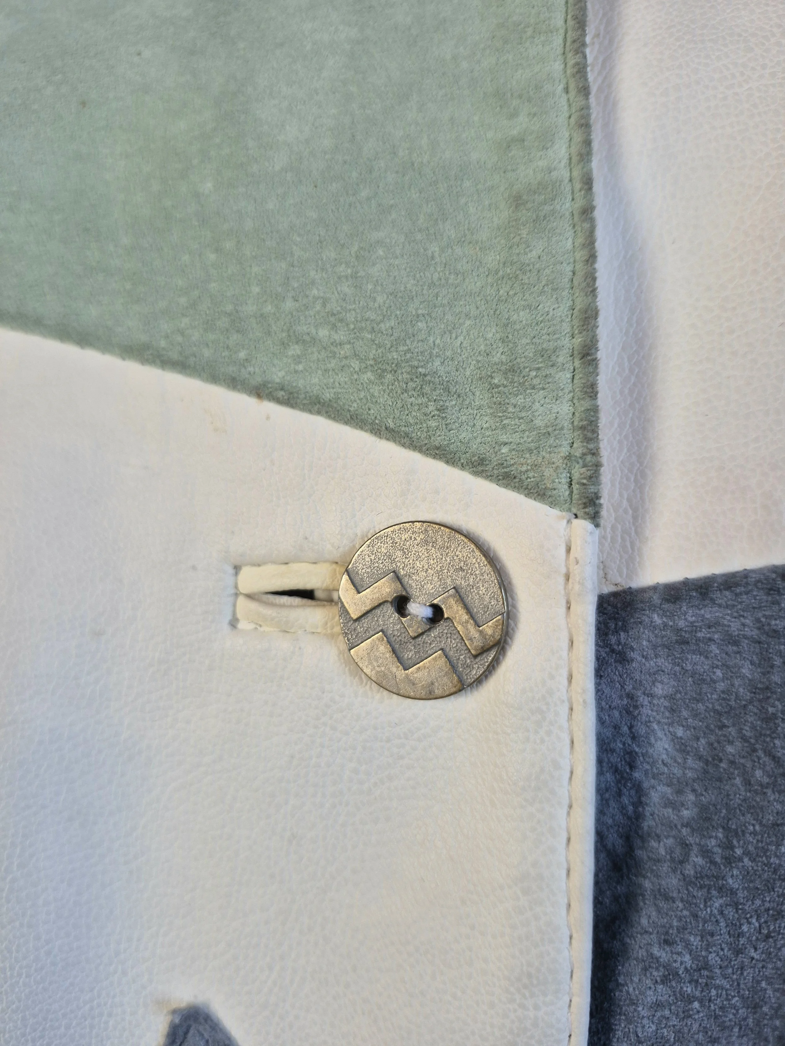 So cute. Lightweight patch colour block jacket. Drewstring to waist, zip and popper front.