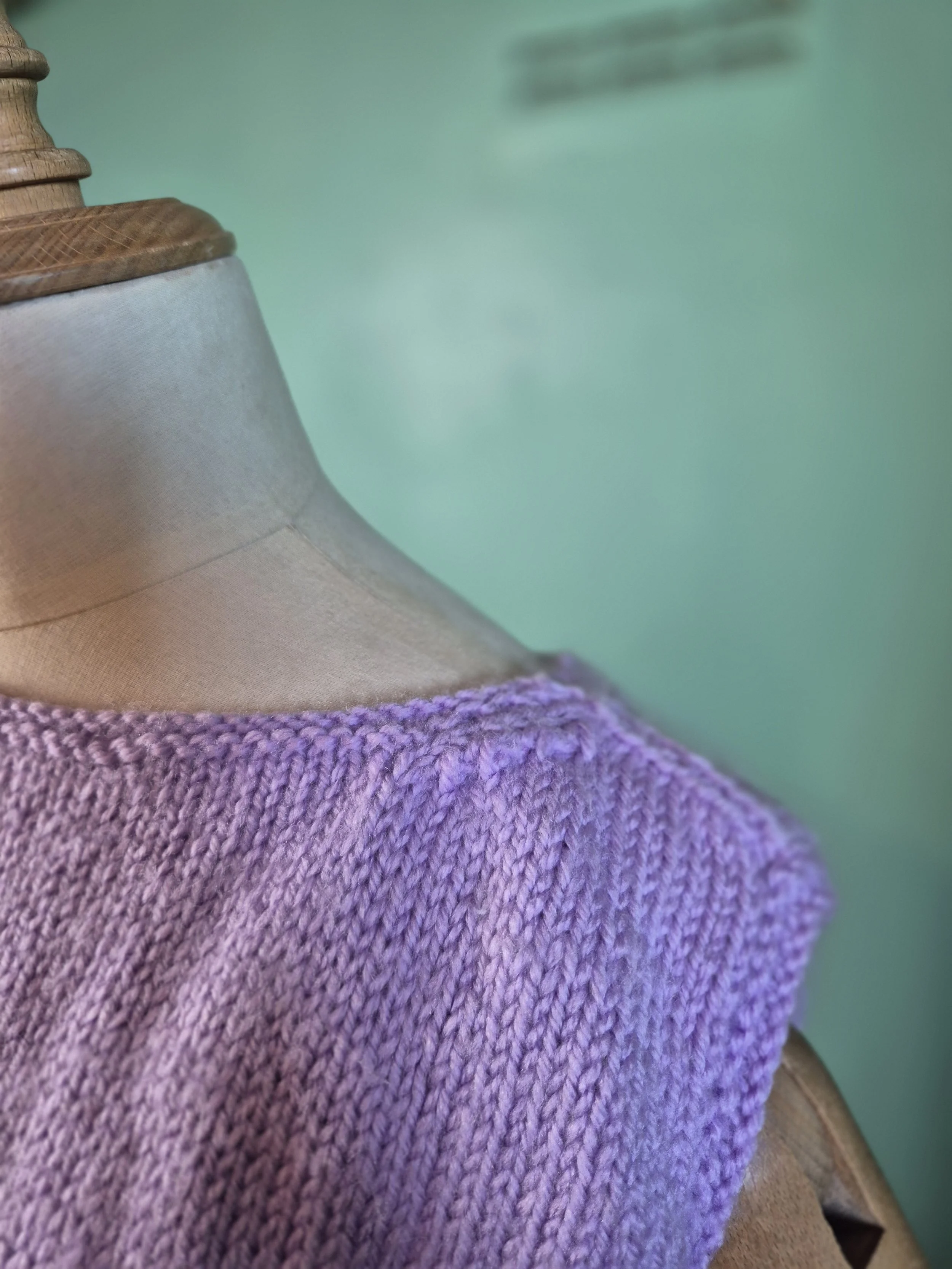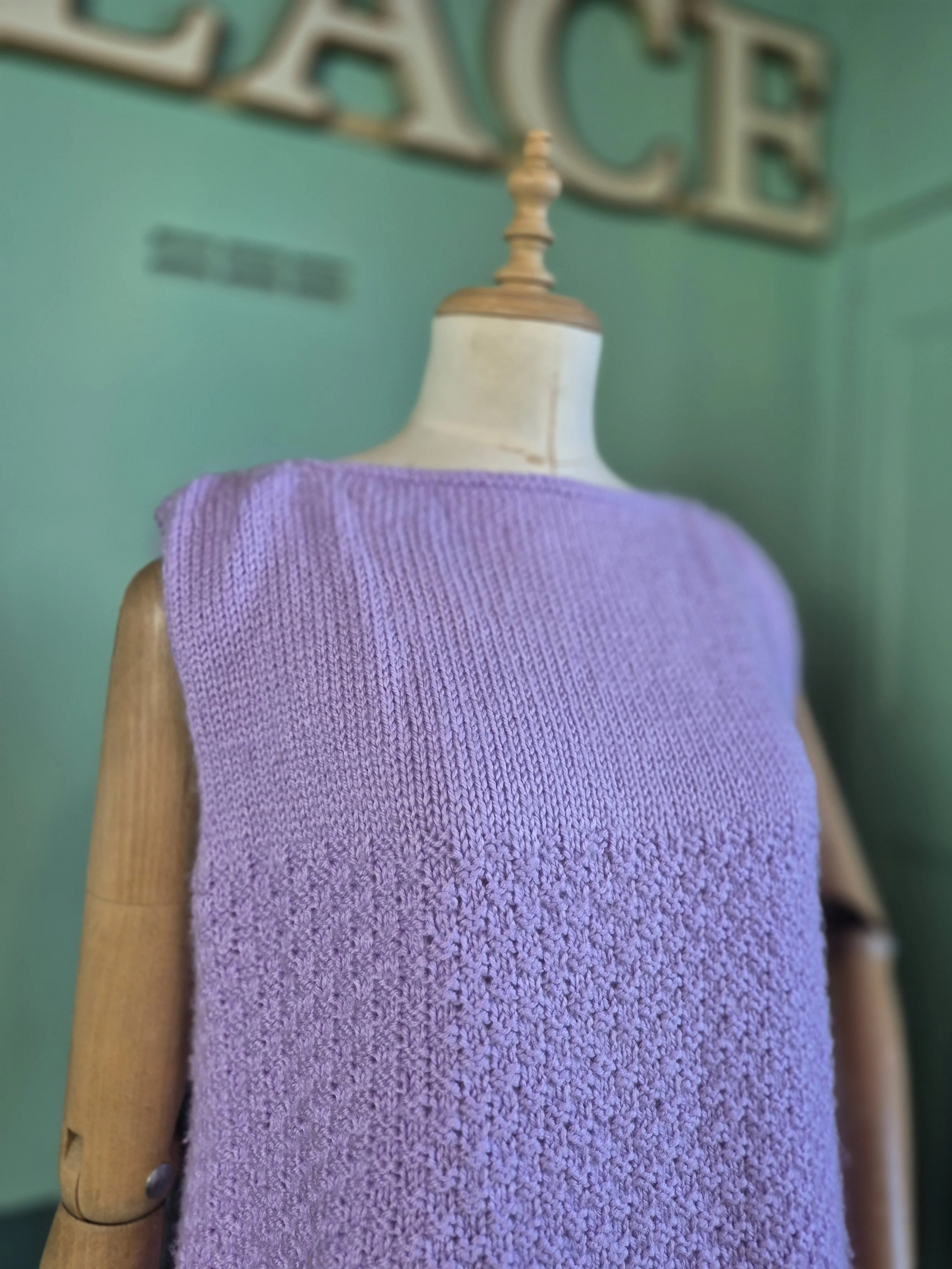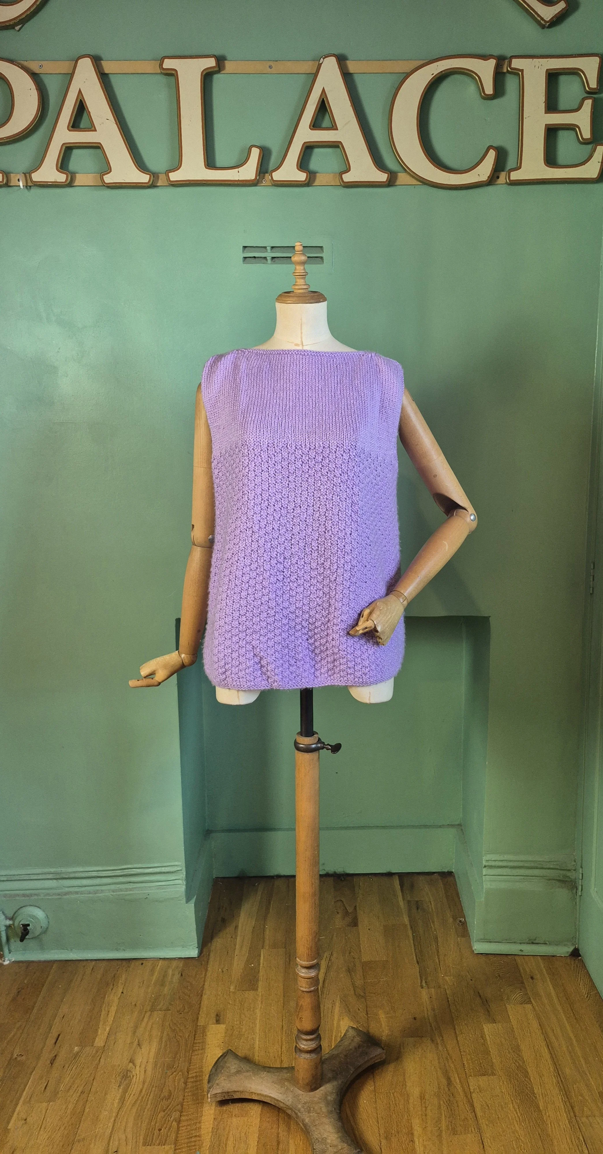 This is a glorious crochet cardigan in brown and turquoise. Fastens with crochet buttons and has a matching belt.