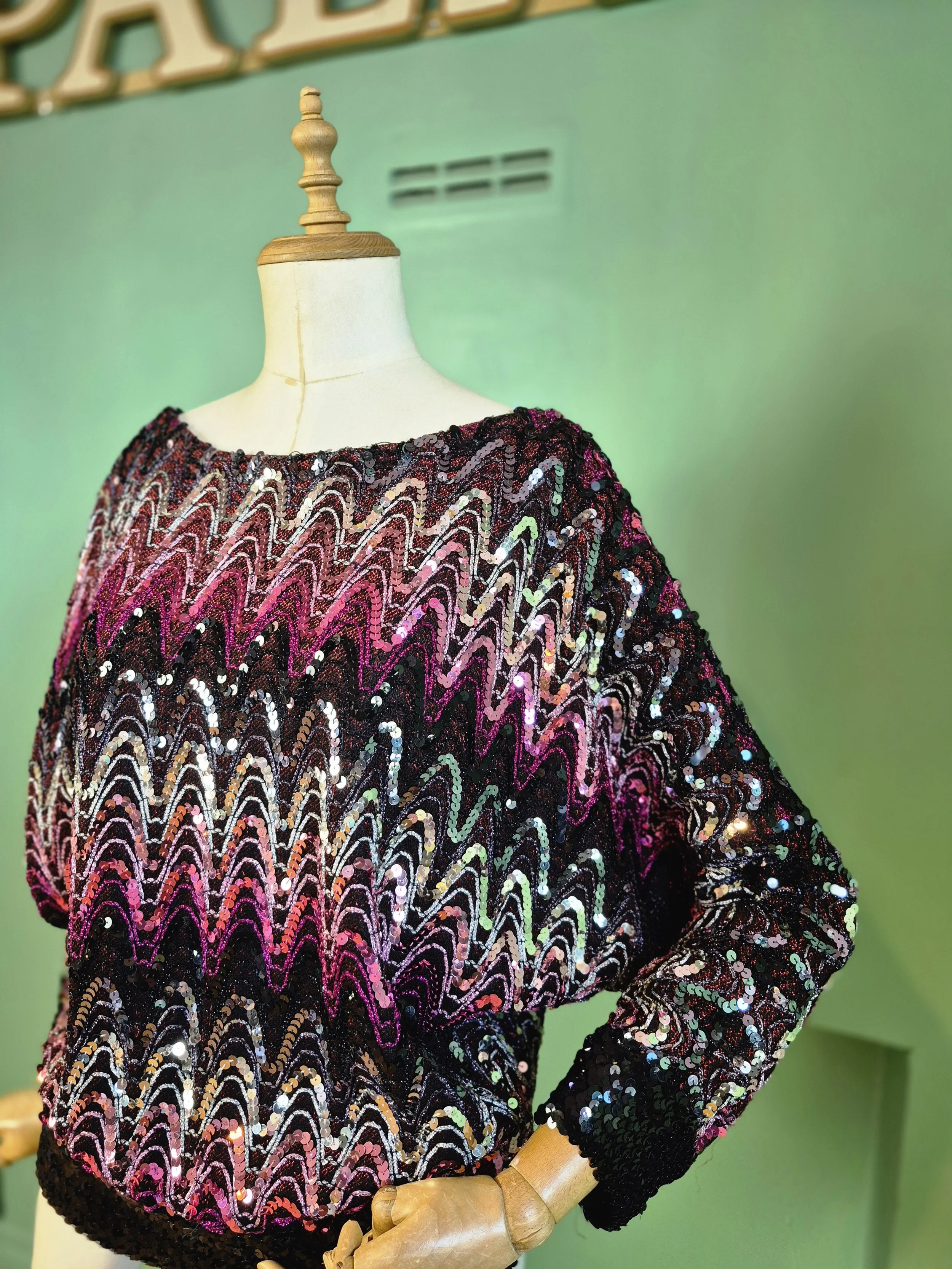 Ann Green Batwing Sequin Top