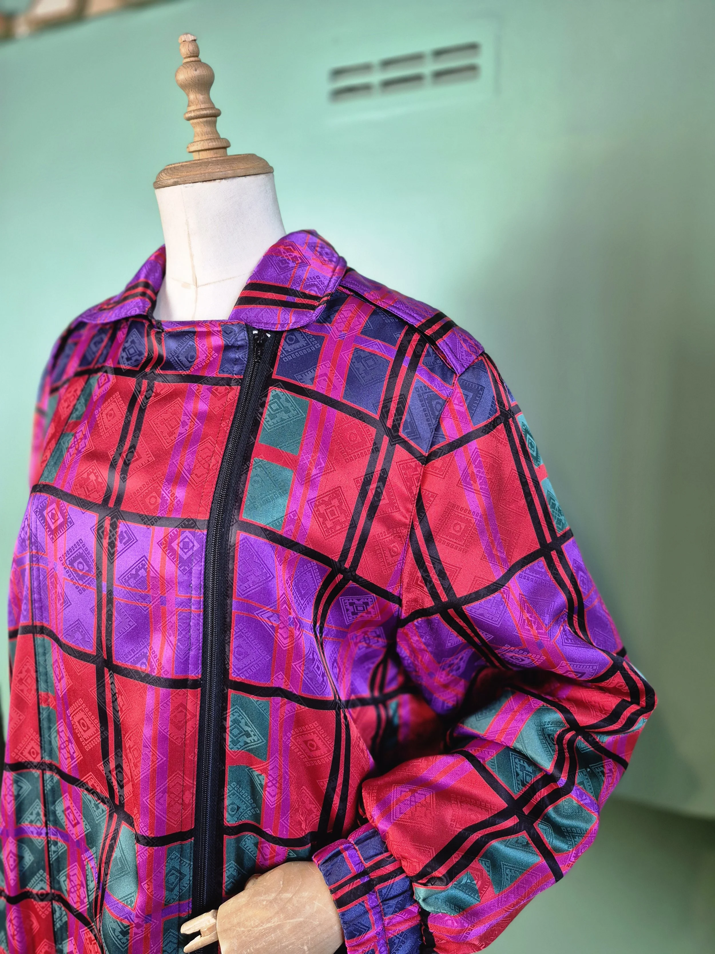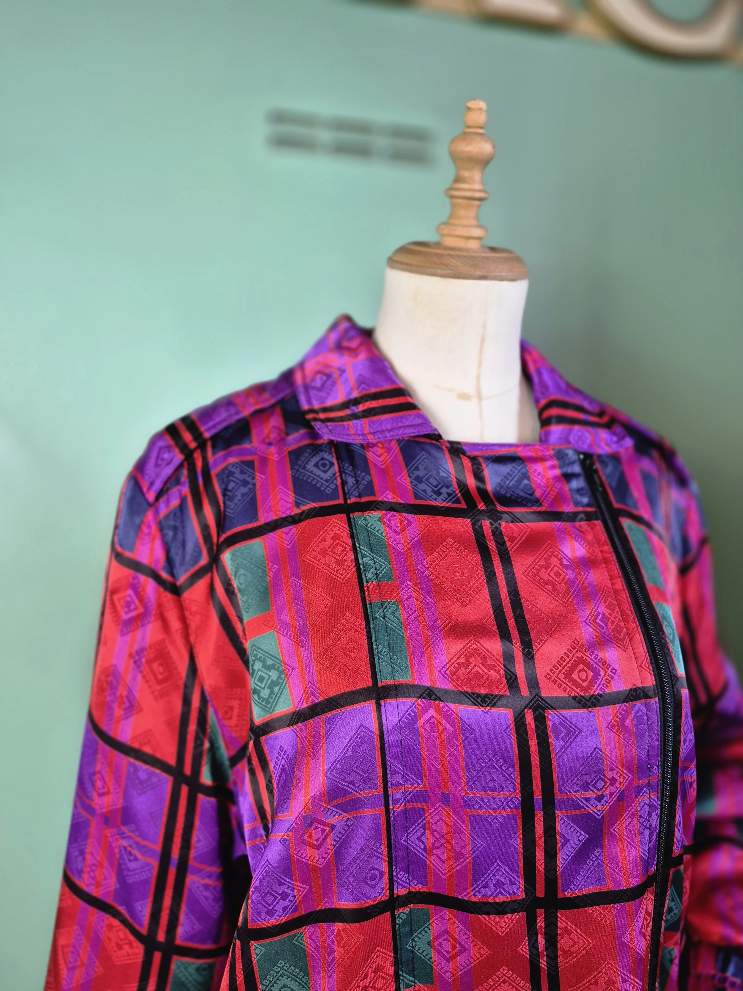 This is so pretty. Lovely handmade top. Button front with large collar and turned back cuffs. Could be worn as a shirt or jacket.