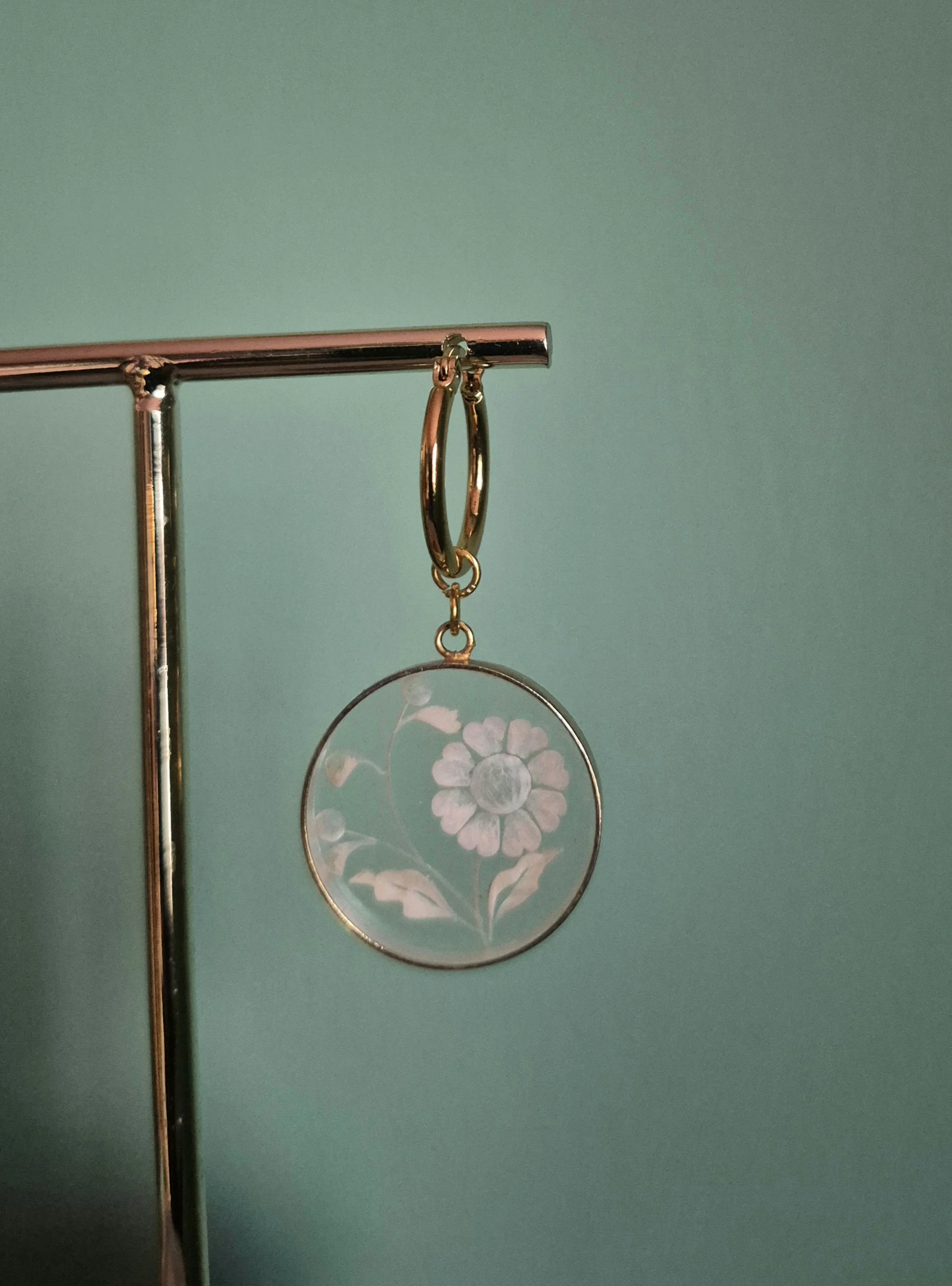 Each earring is on a gold plated lever arch hoop. The hoops are 2cm.