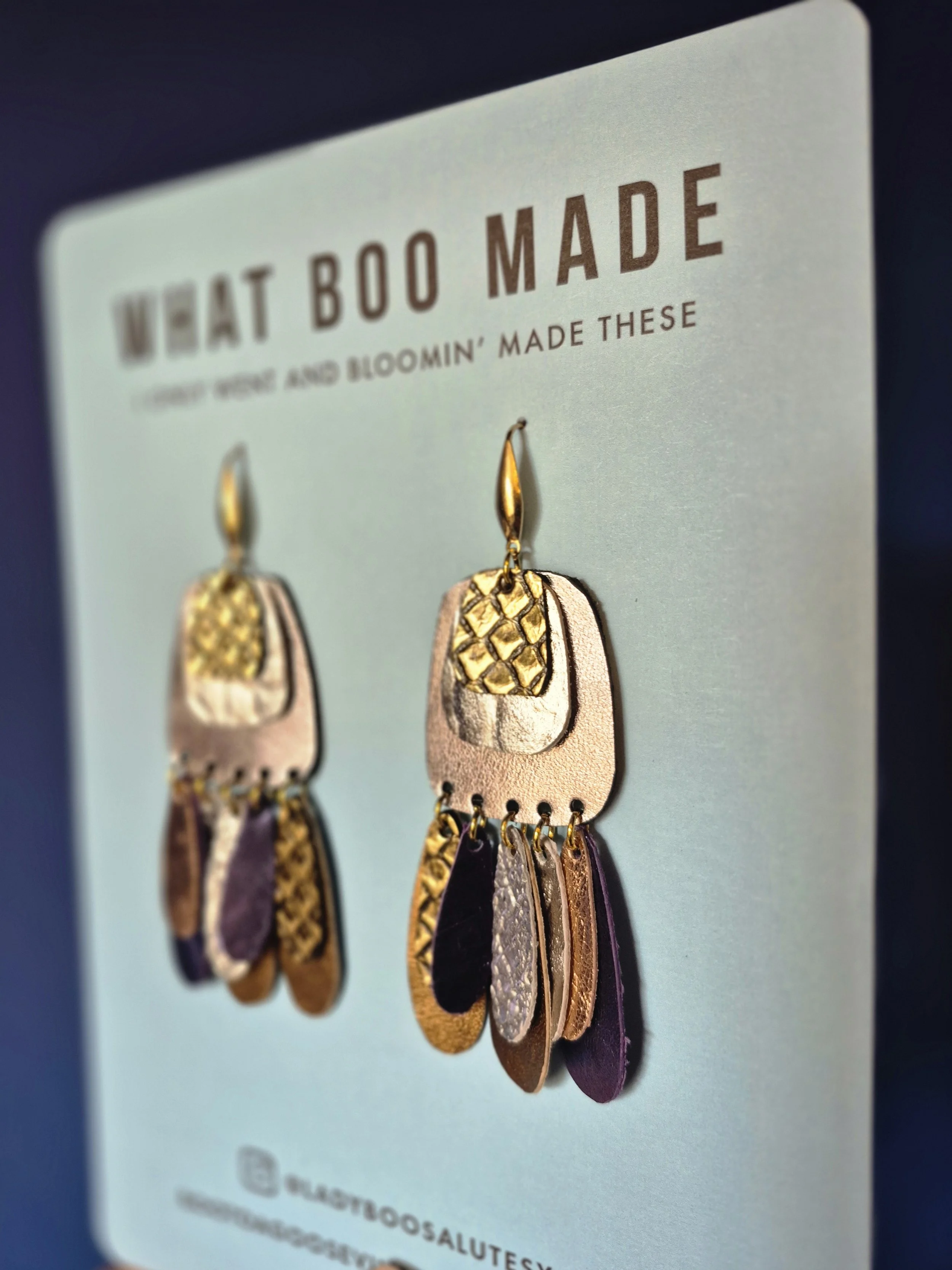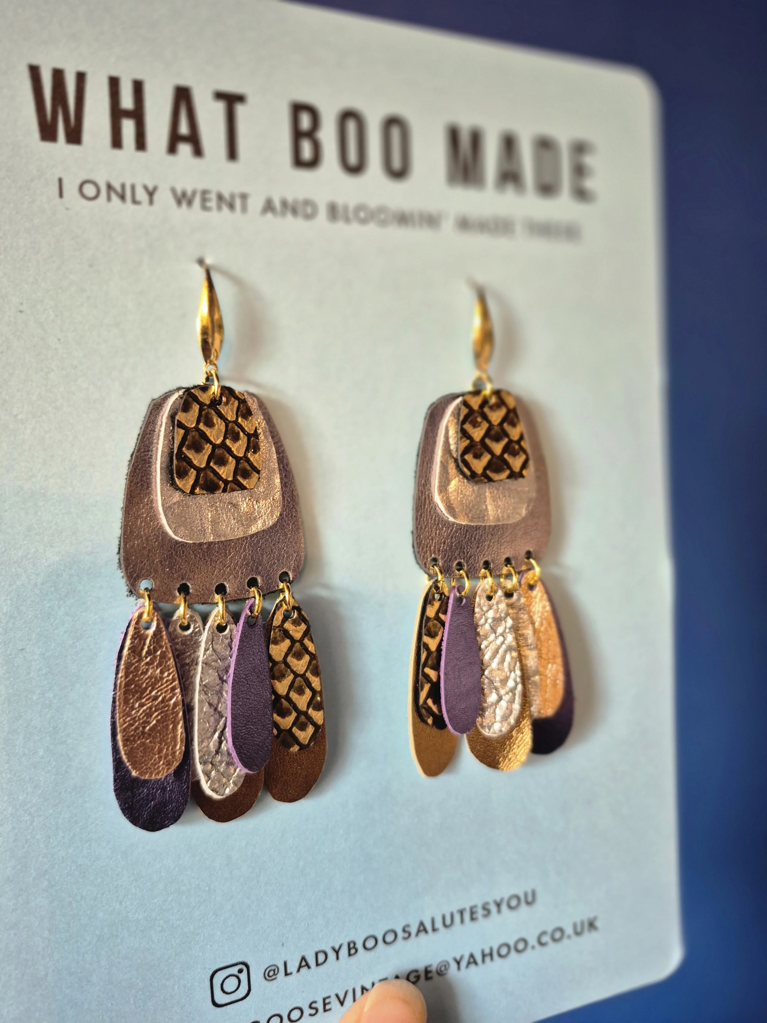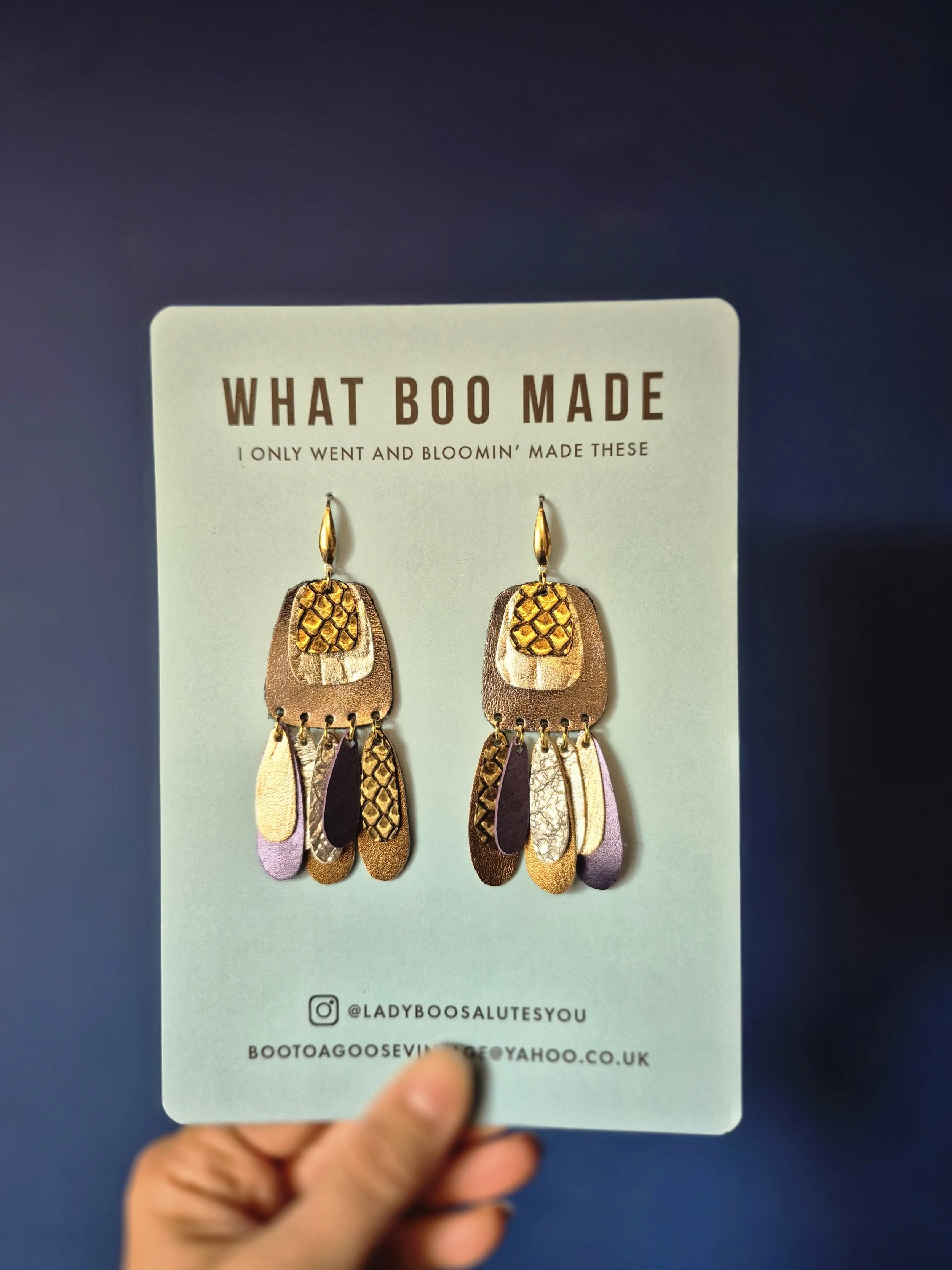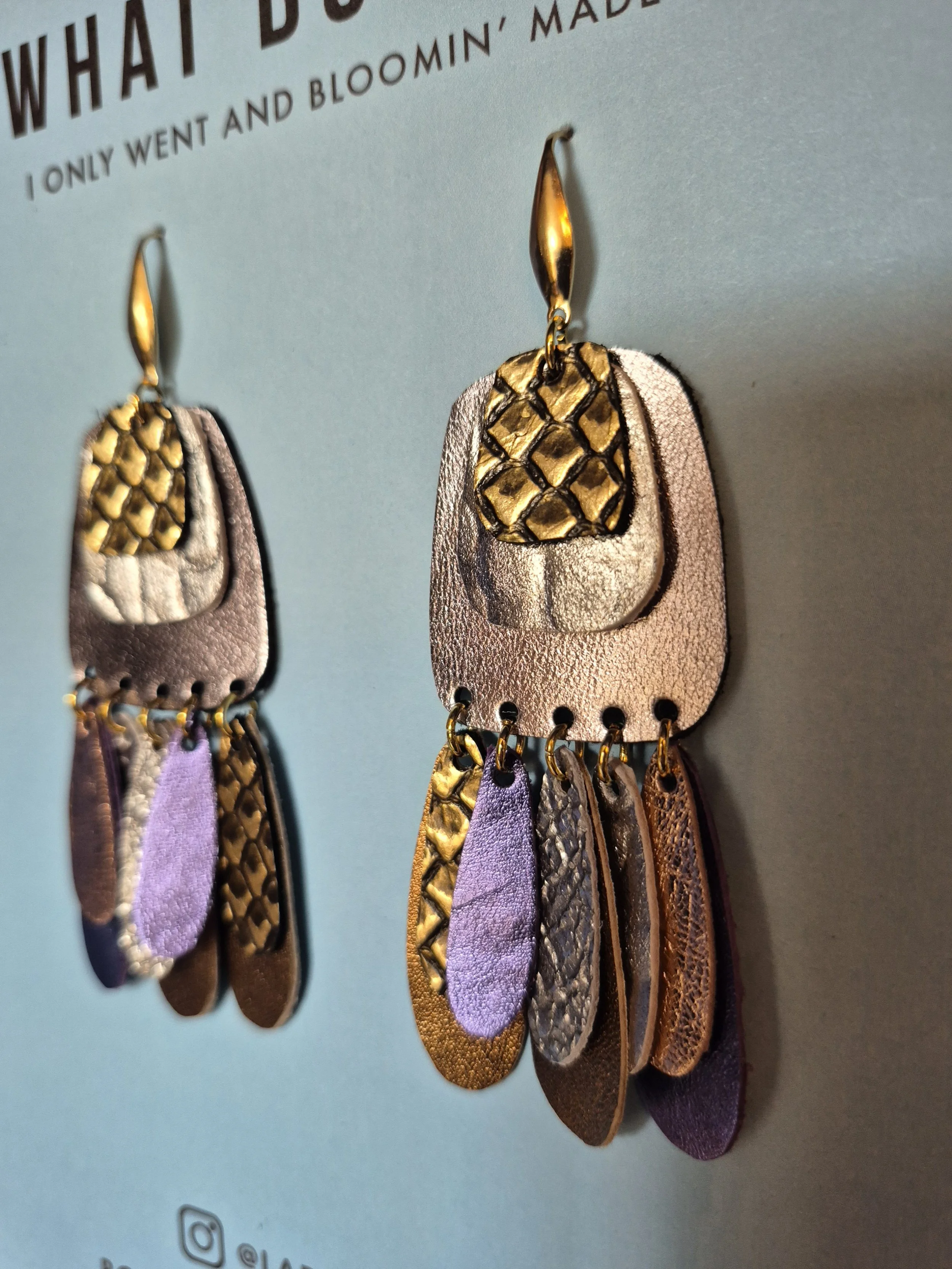 The Leather Treasure Range sustainable made from metallic leather offcuts. Making treasure from scraps. High impact but incredibly lightweight.