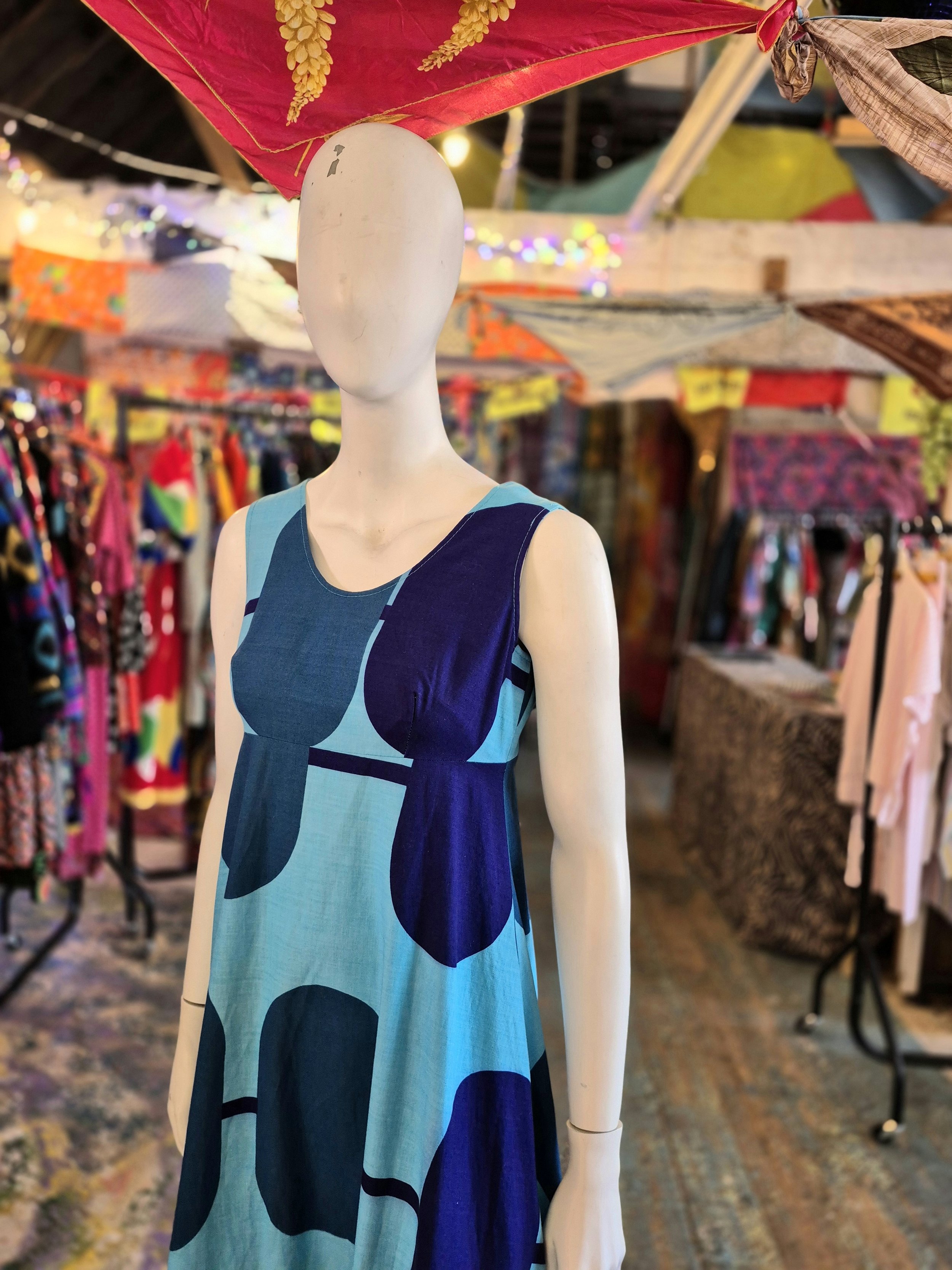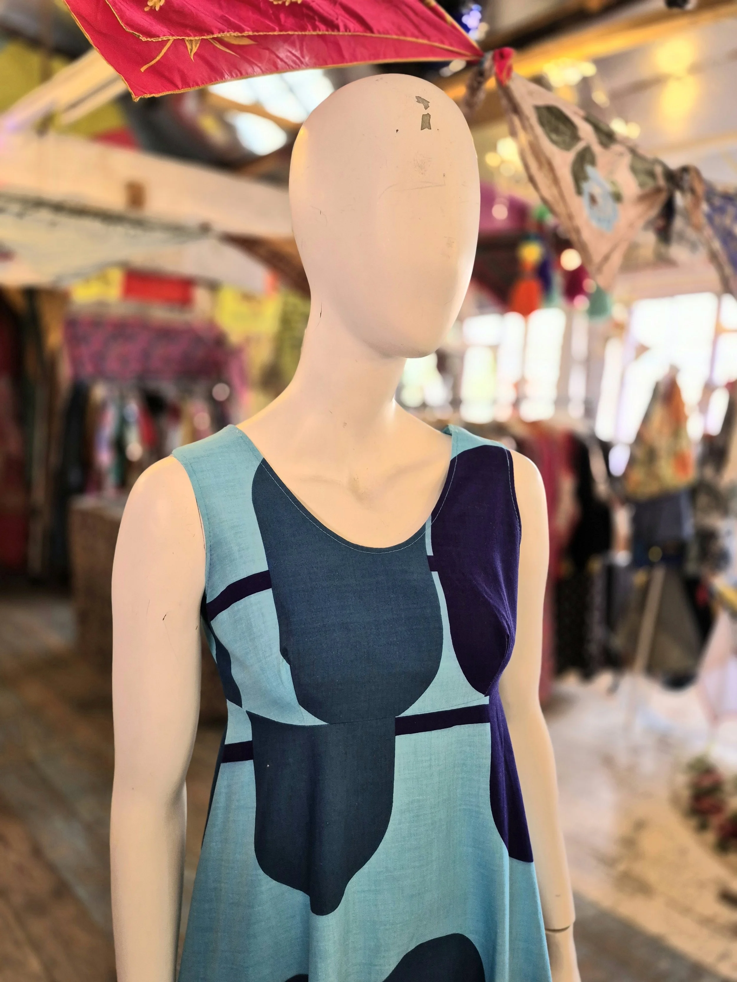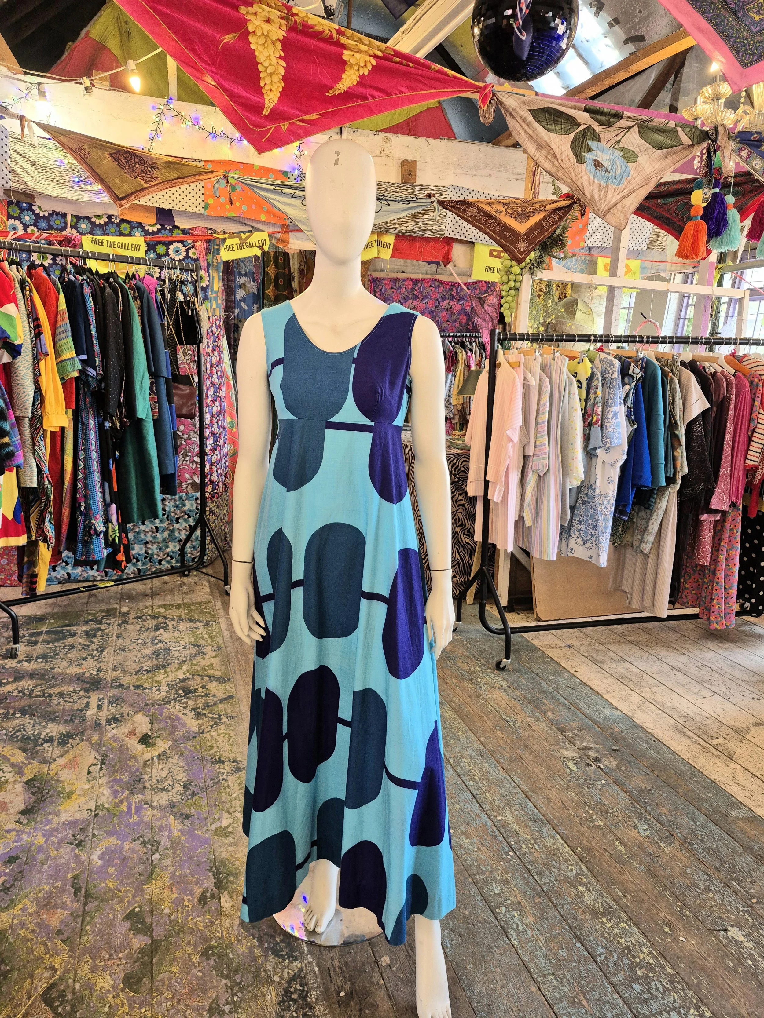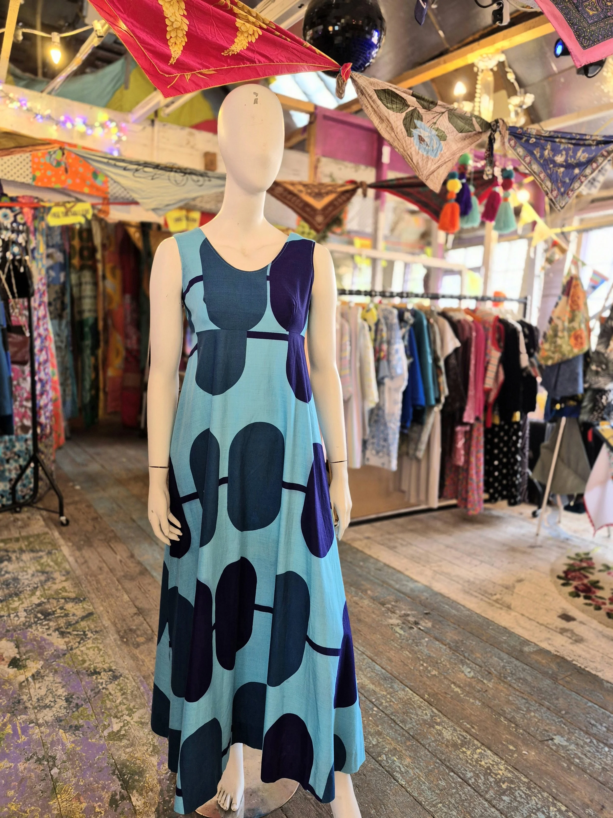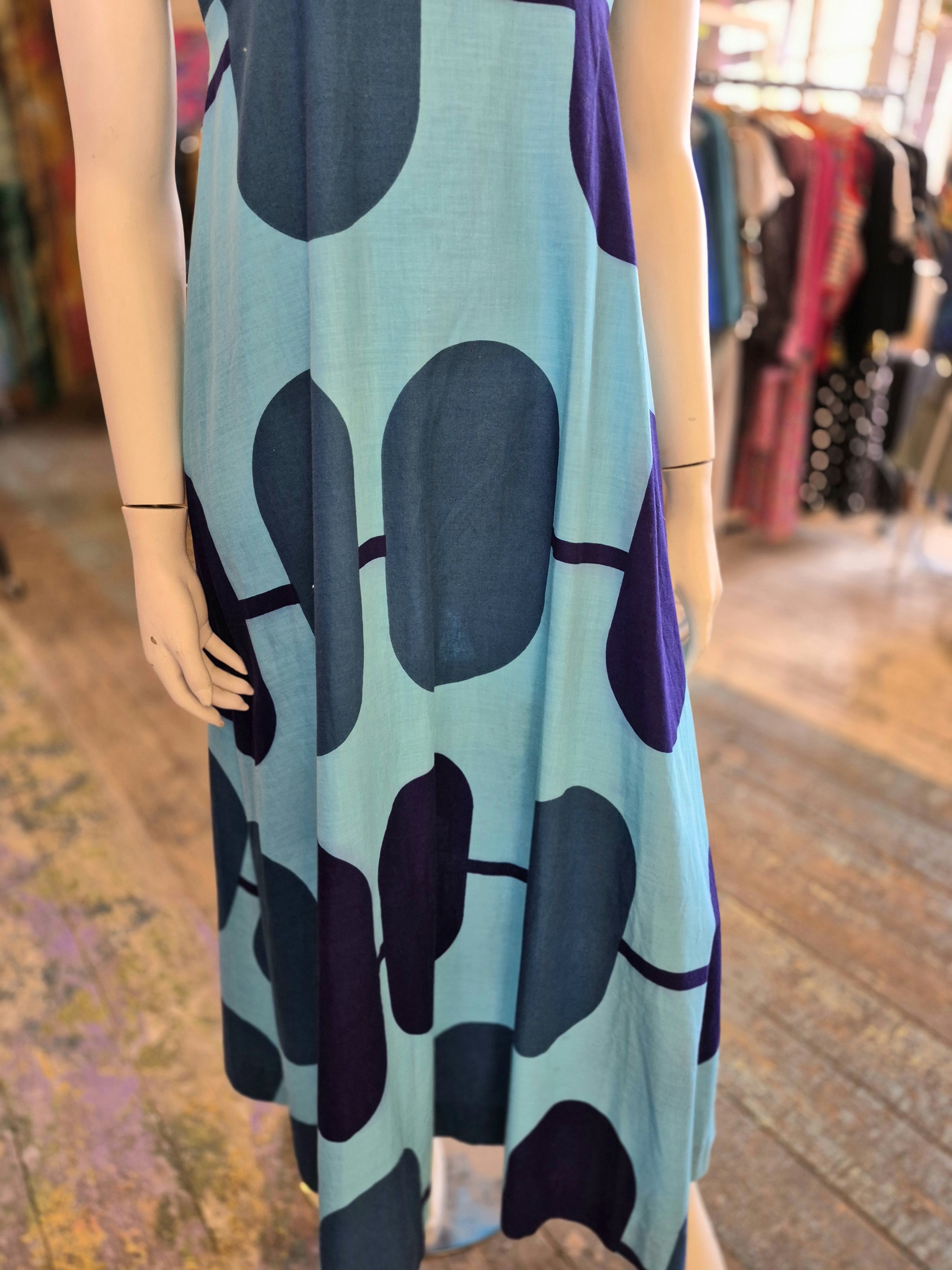 Stunning bold print from Merry Finn. Empire line cut.