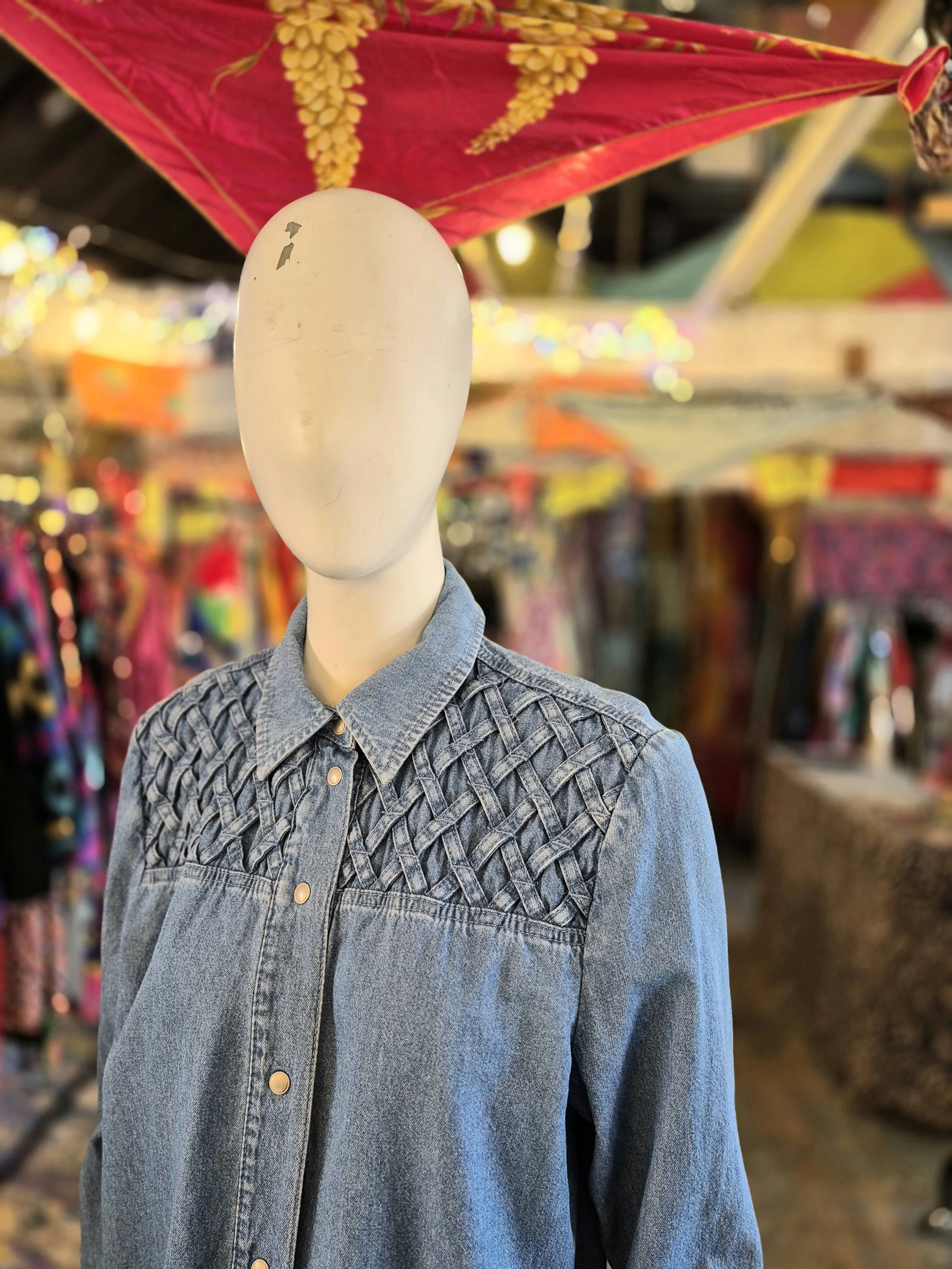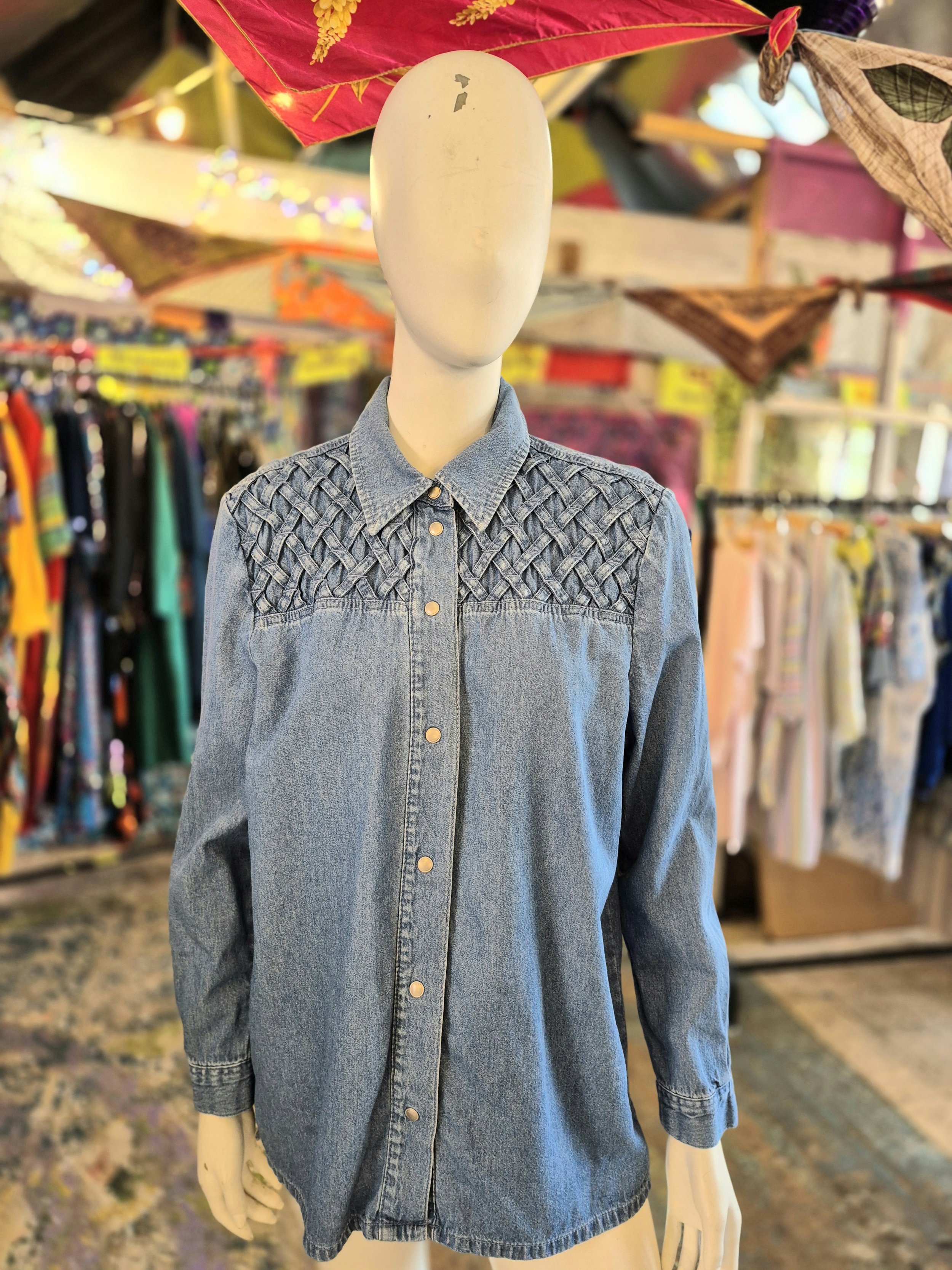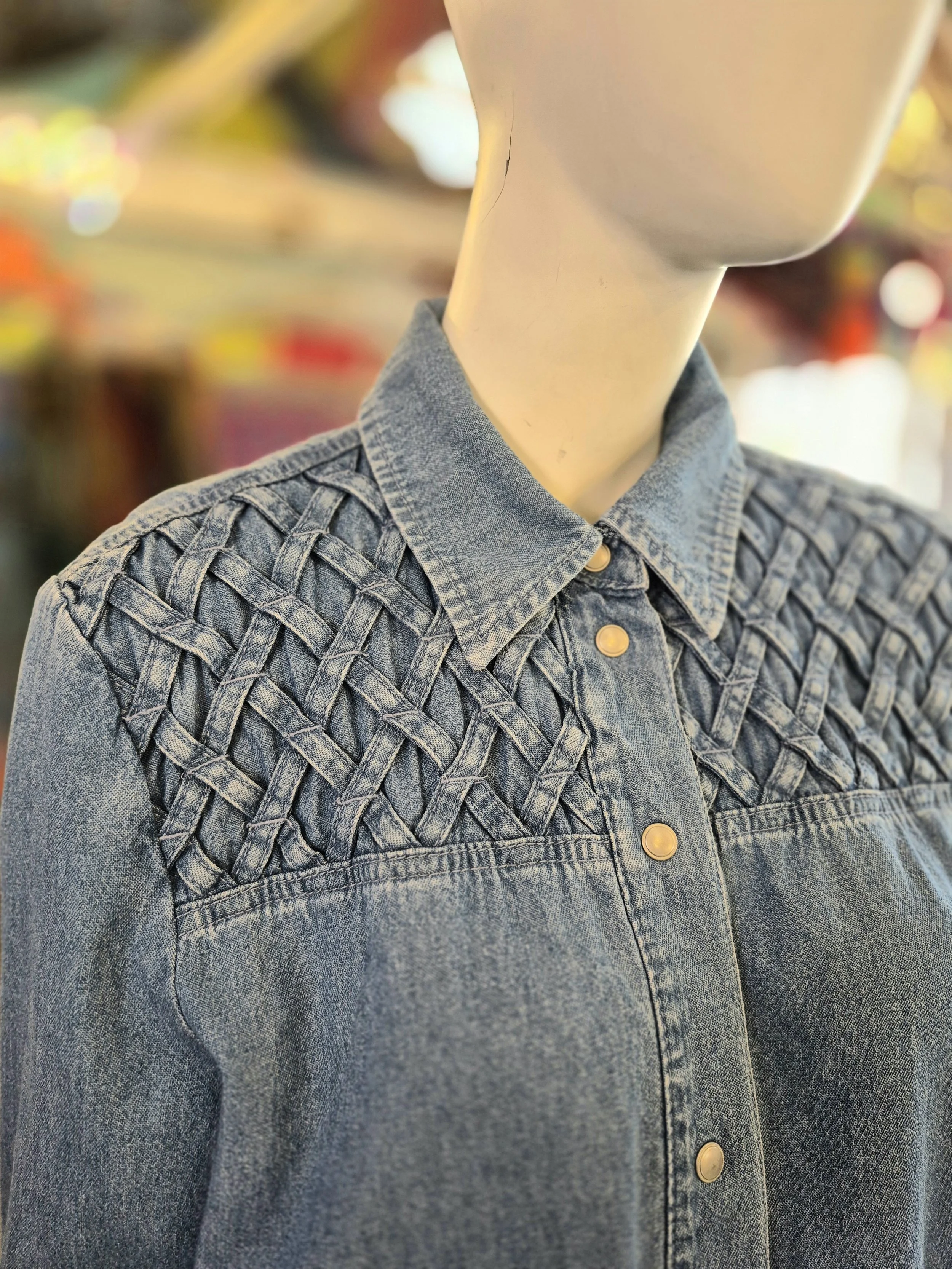 Fabulous denim shirt with woven detail. Fastens with poppers.