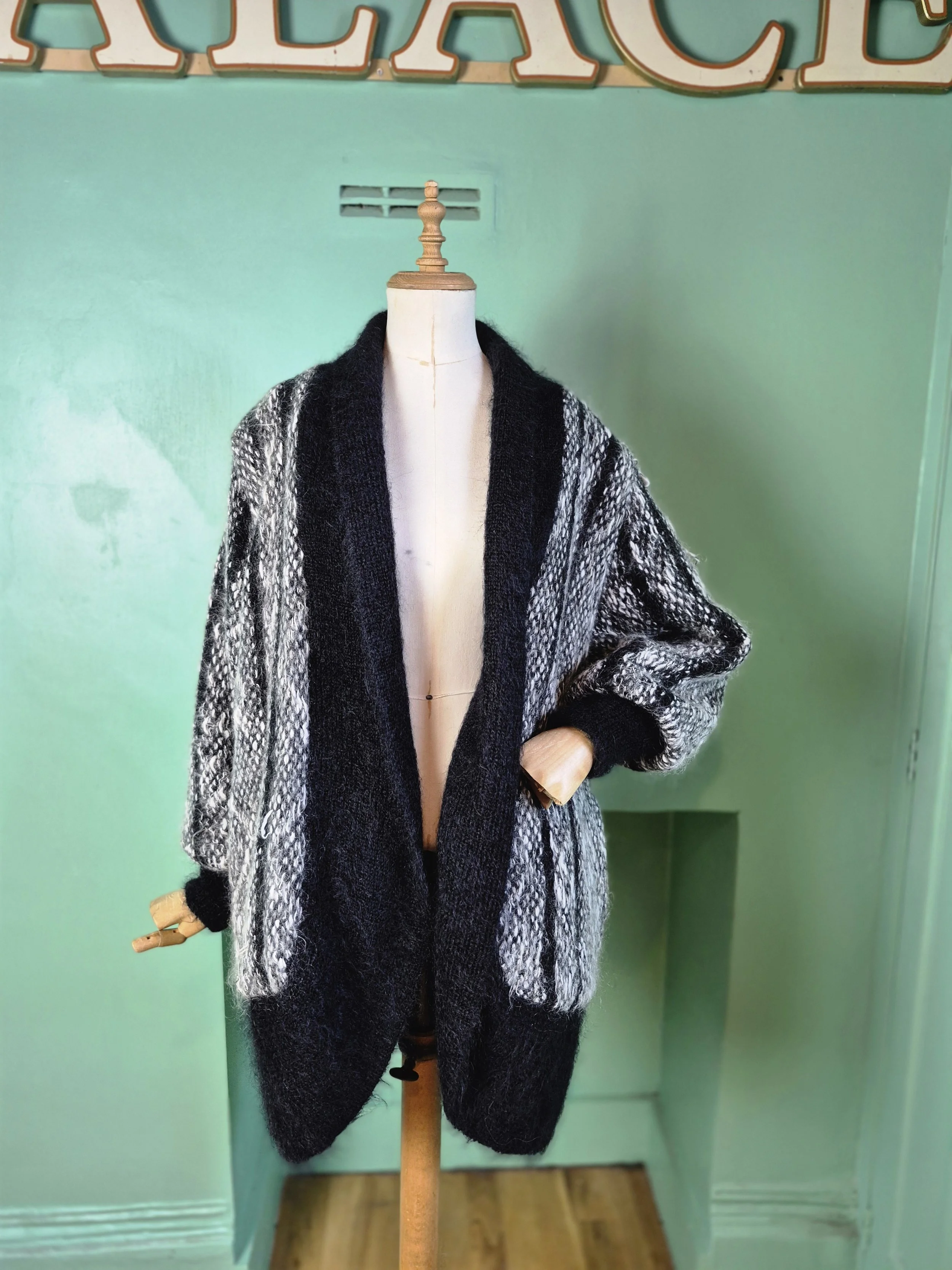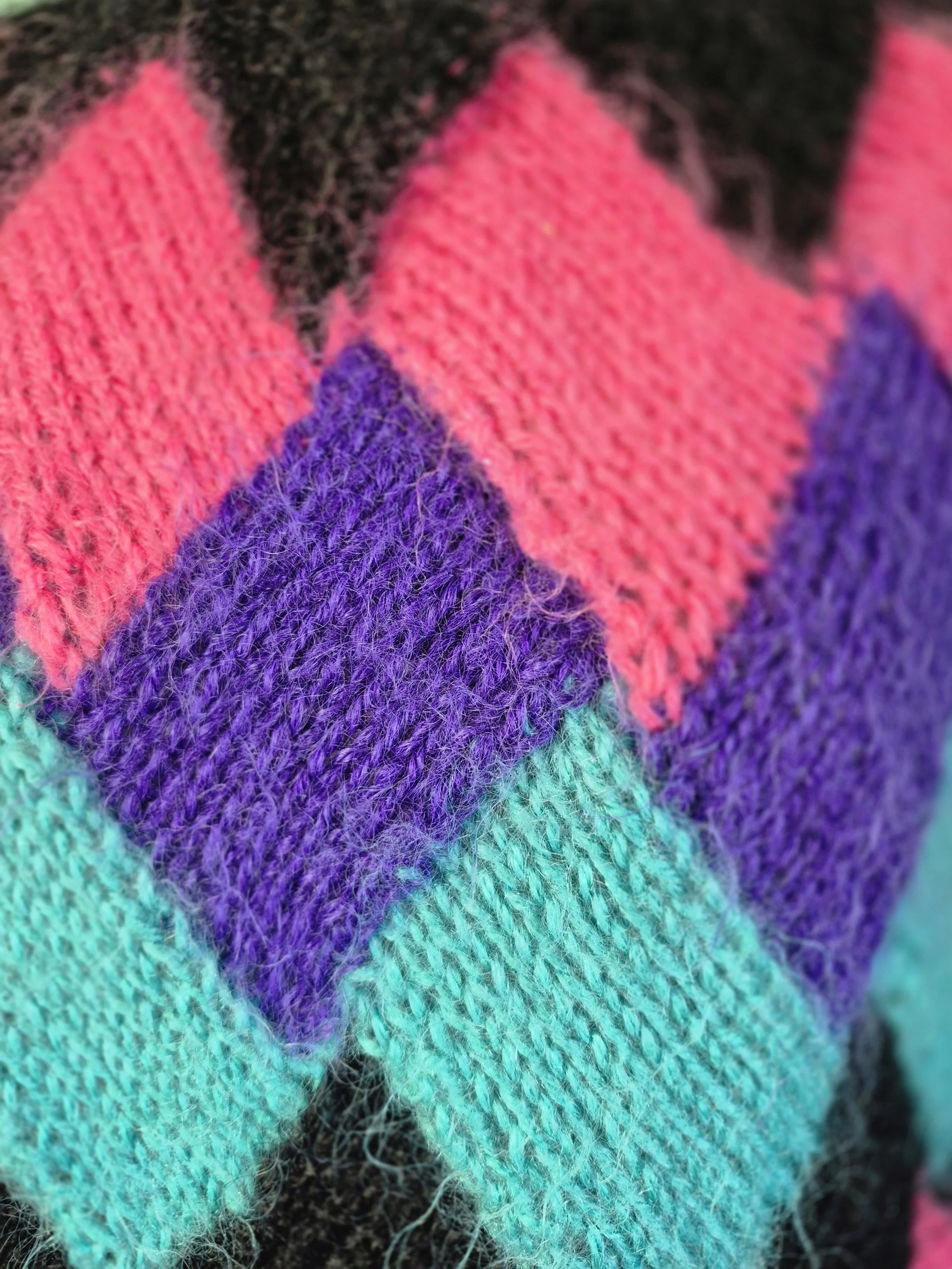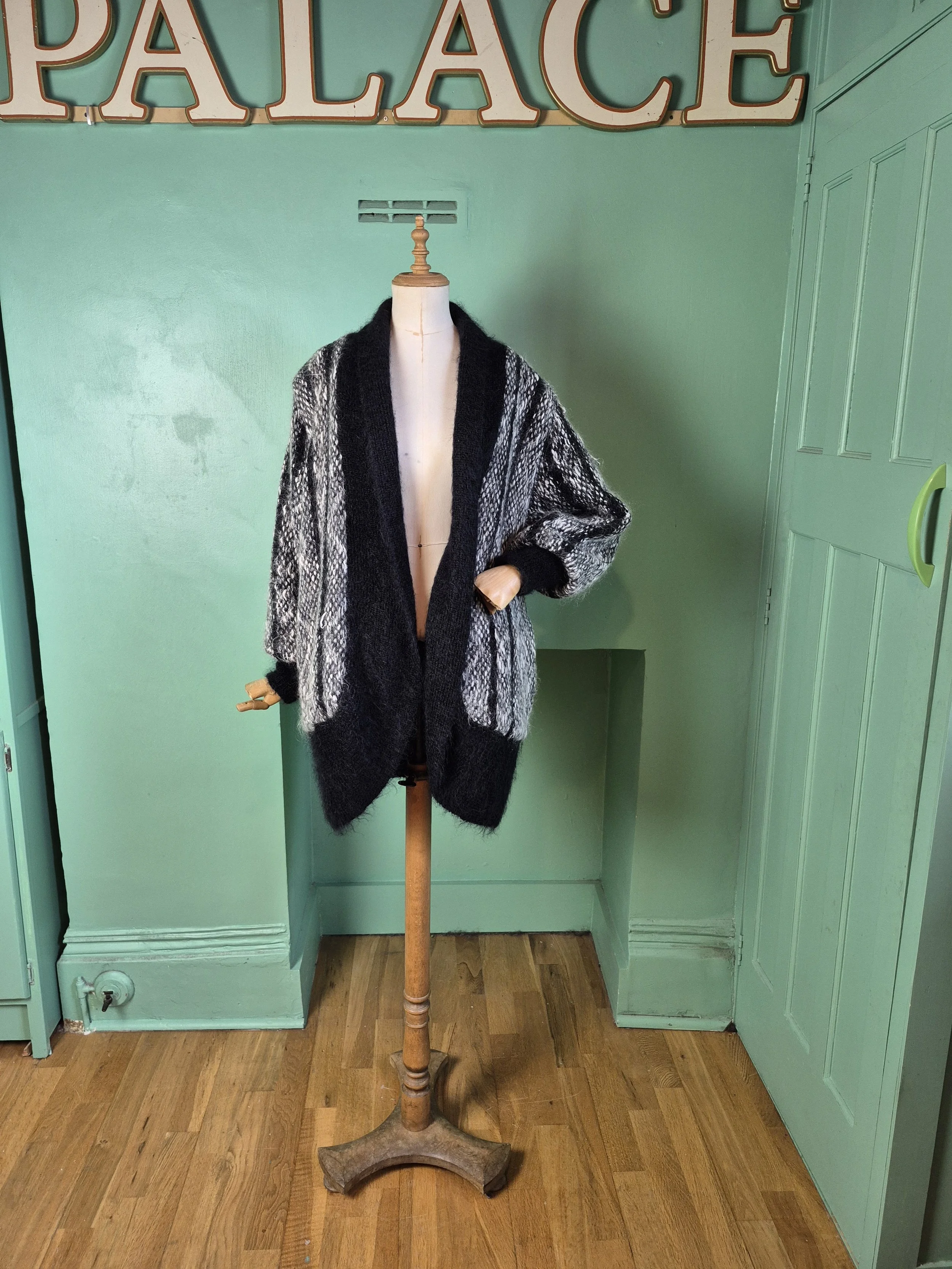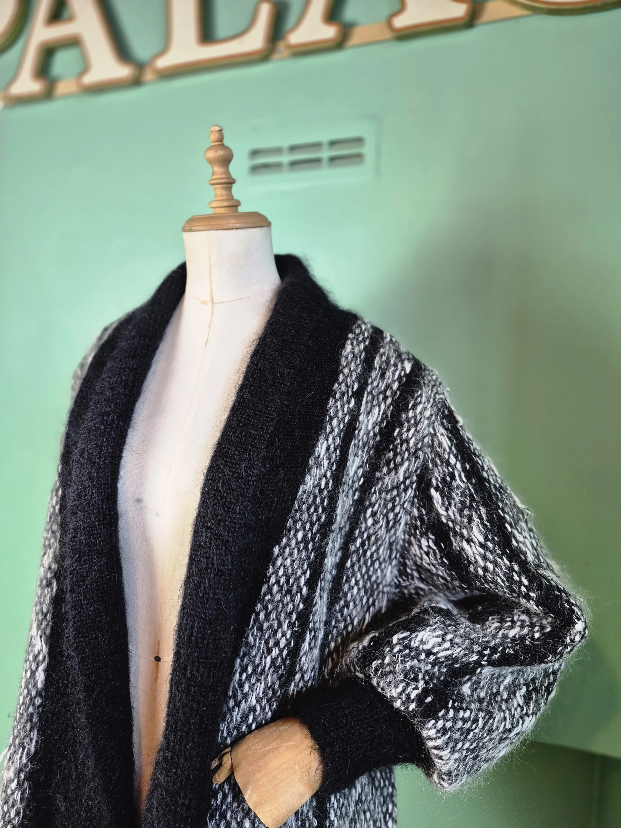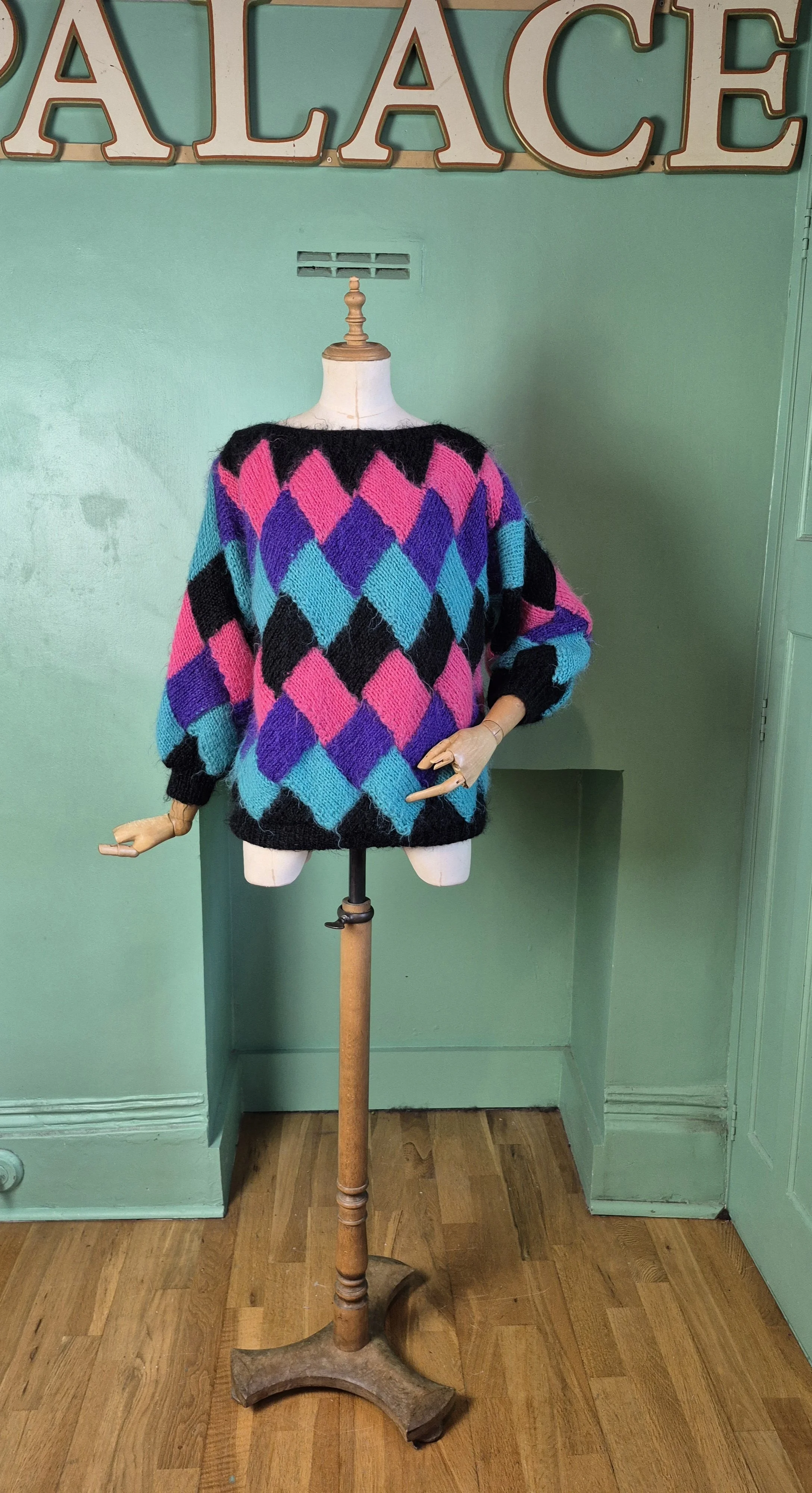 Mixed materials in the fun knit. Embellished shoulders proving more is more.