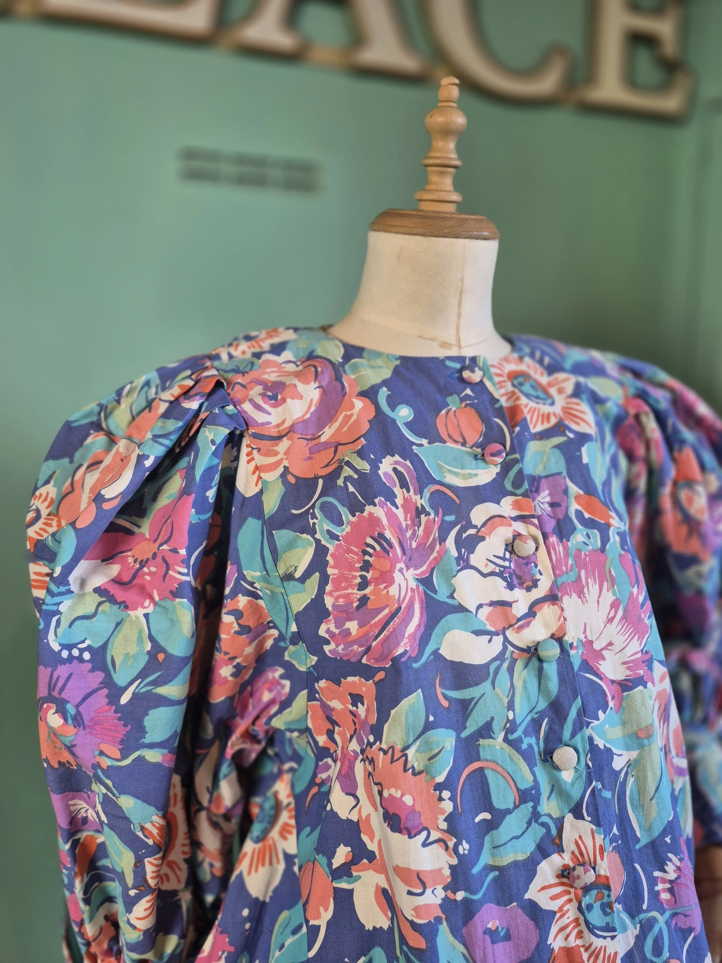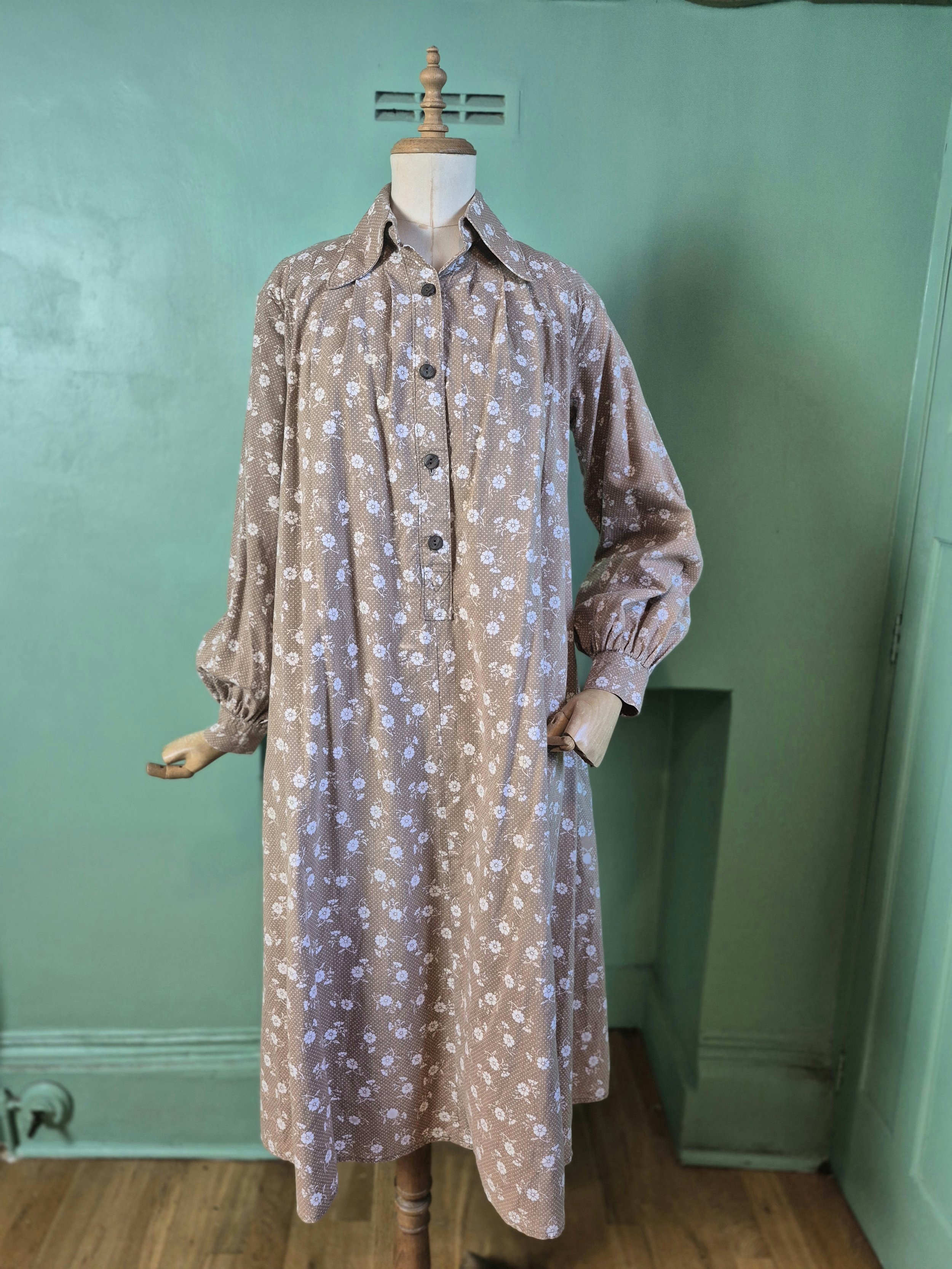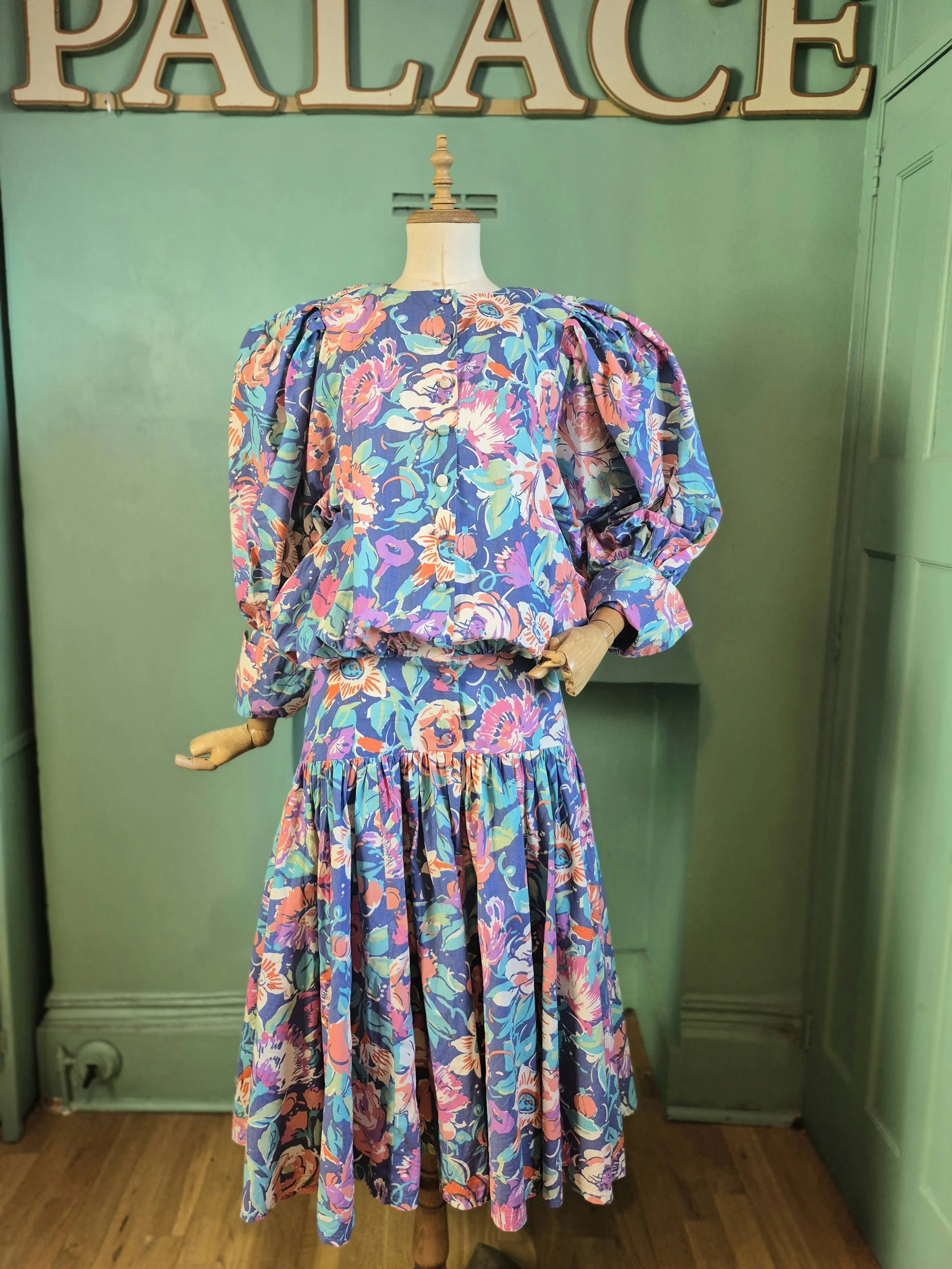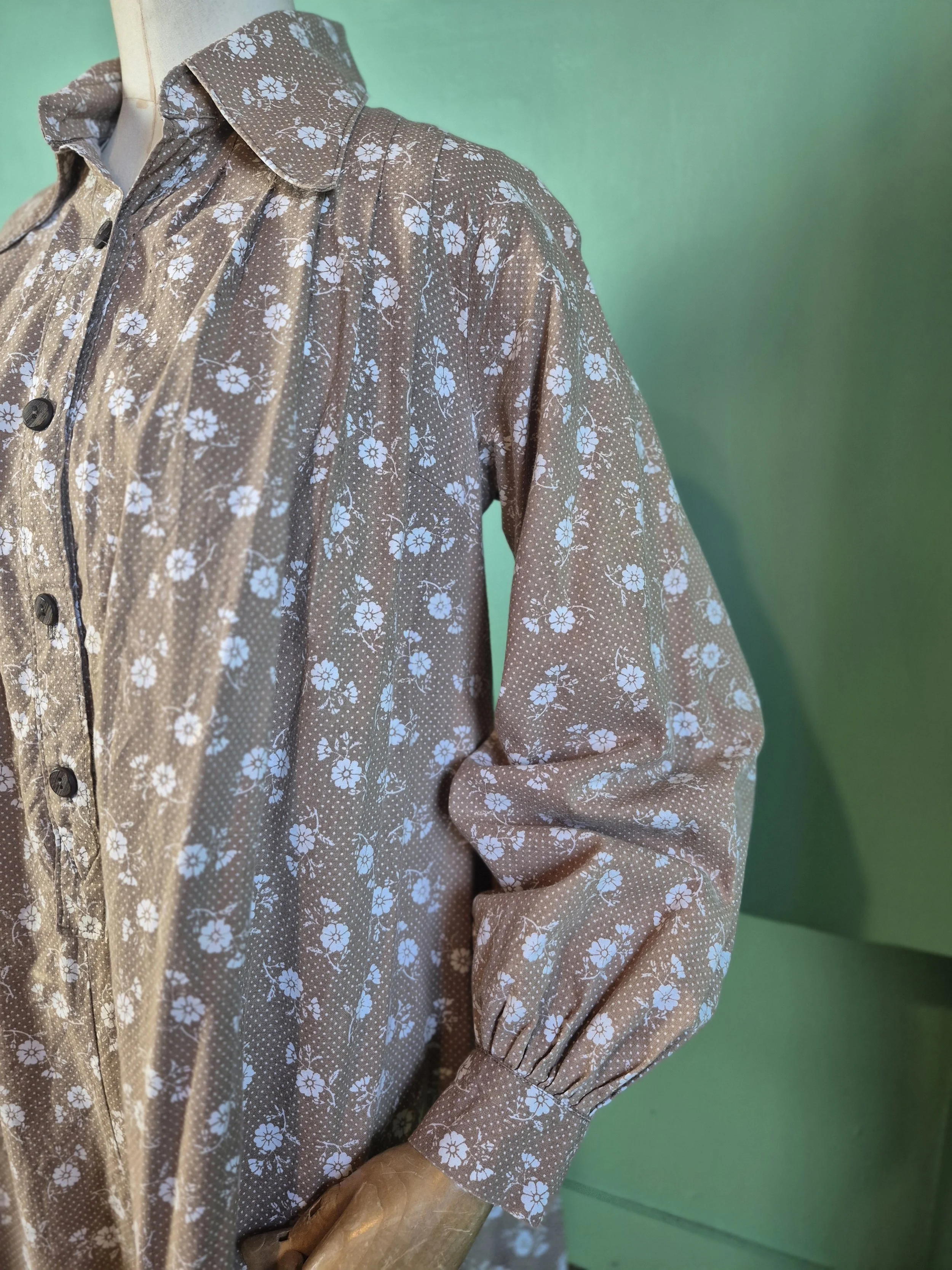 This dress is pure Droopy and Browns. Huge puff sleeves with turn back cuffs, drop waist, blousey top and full skirt. Just stunning.
