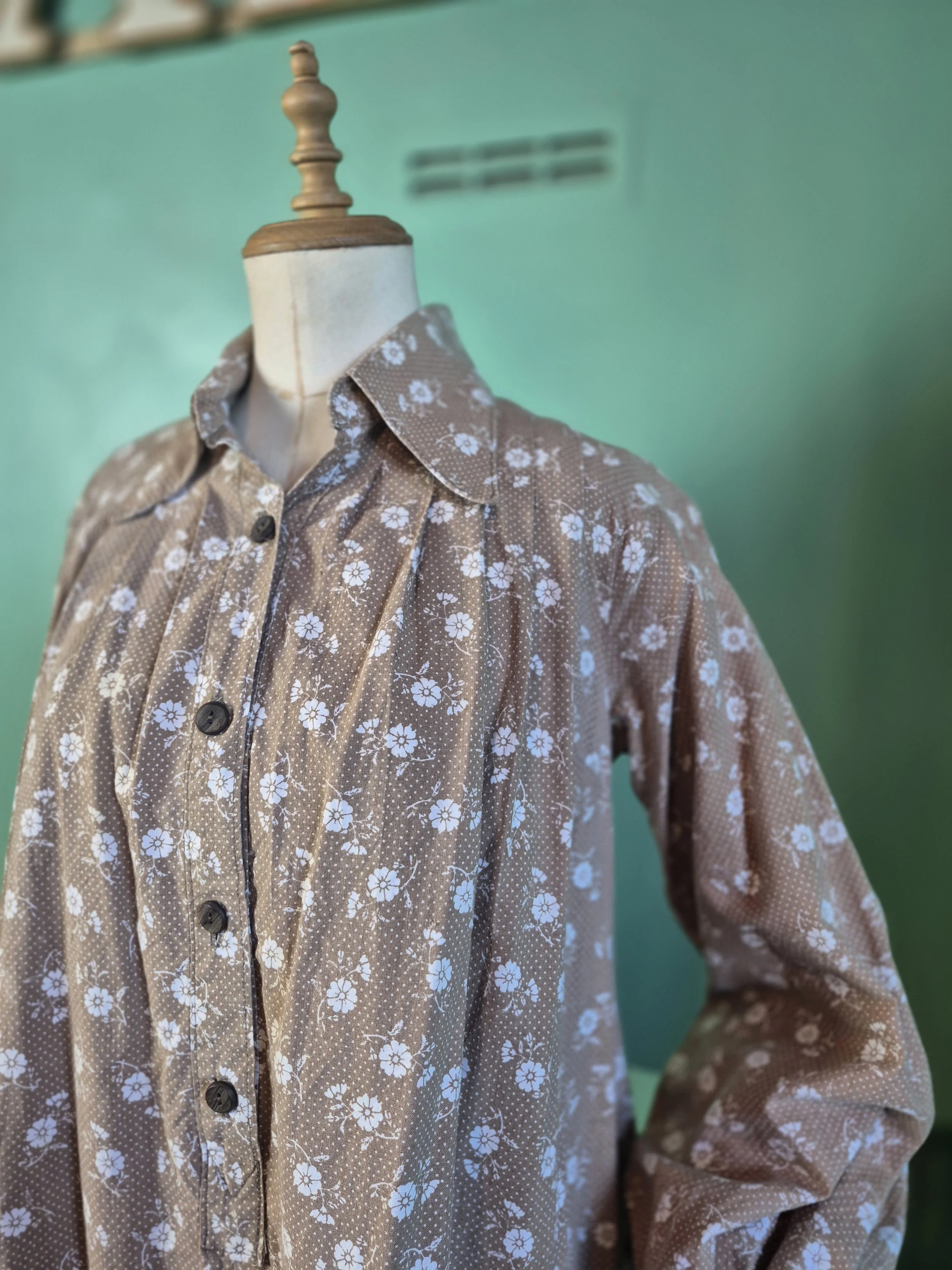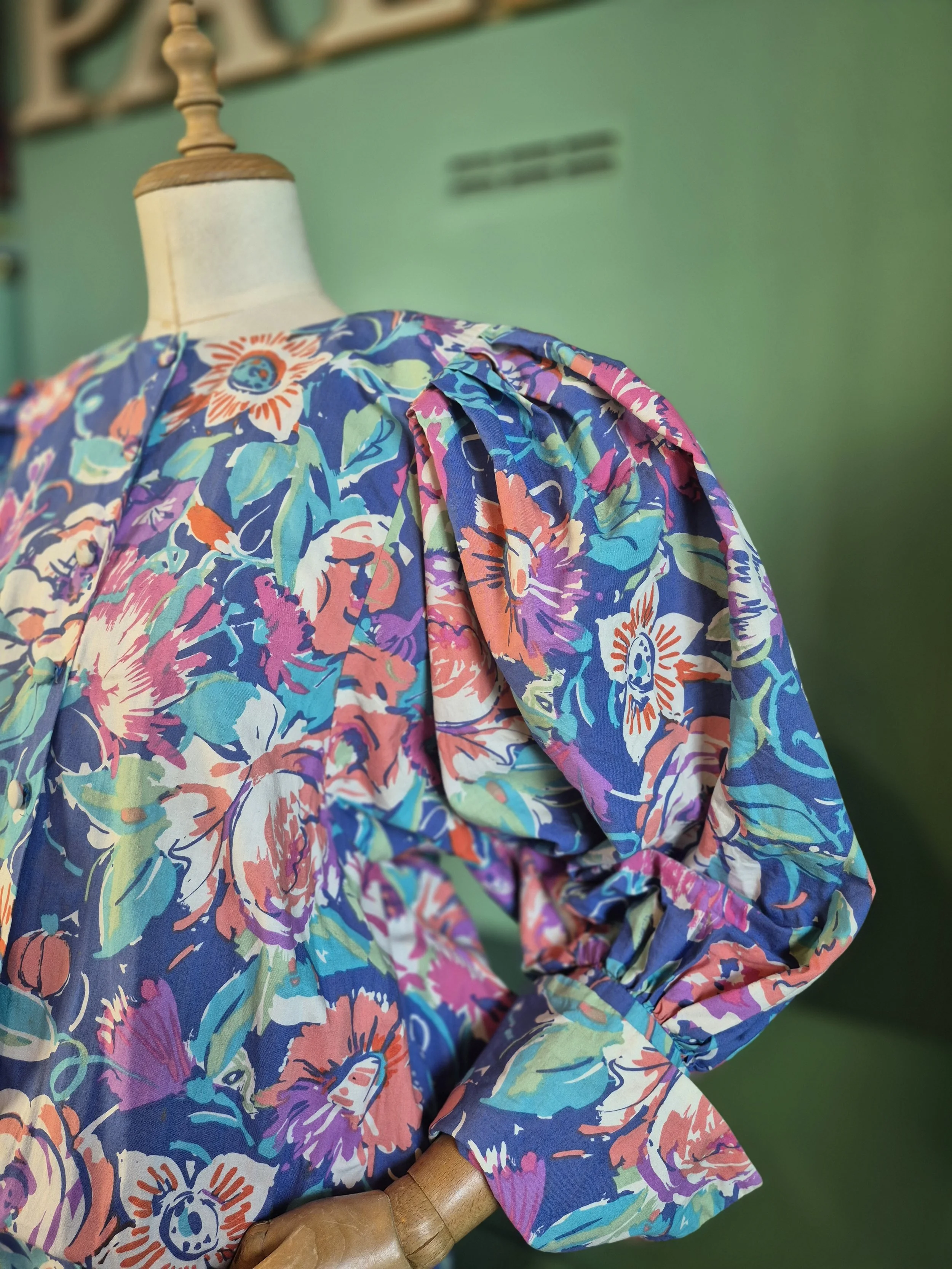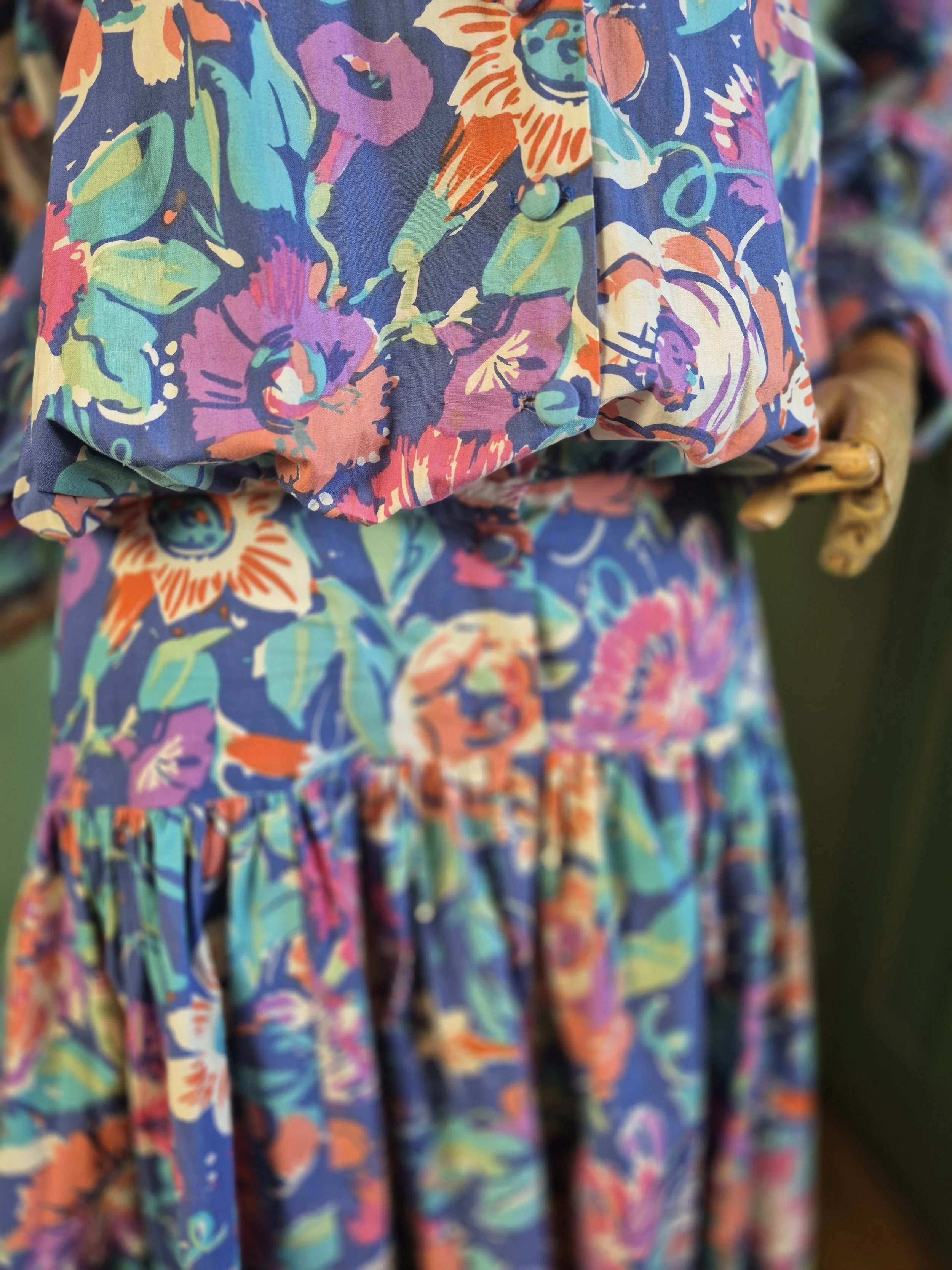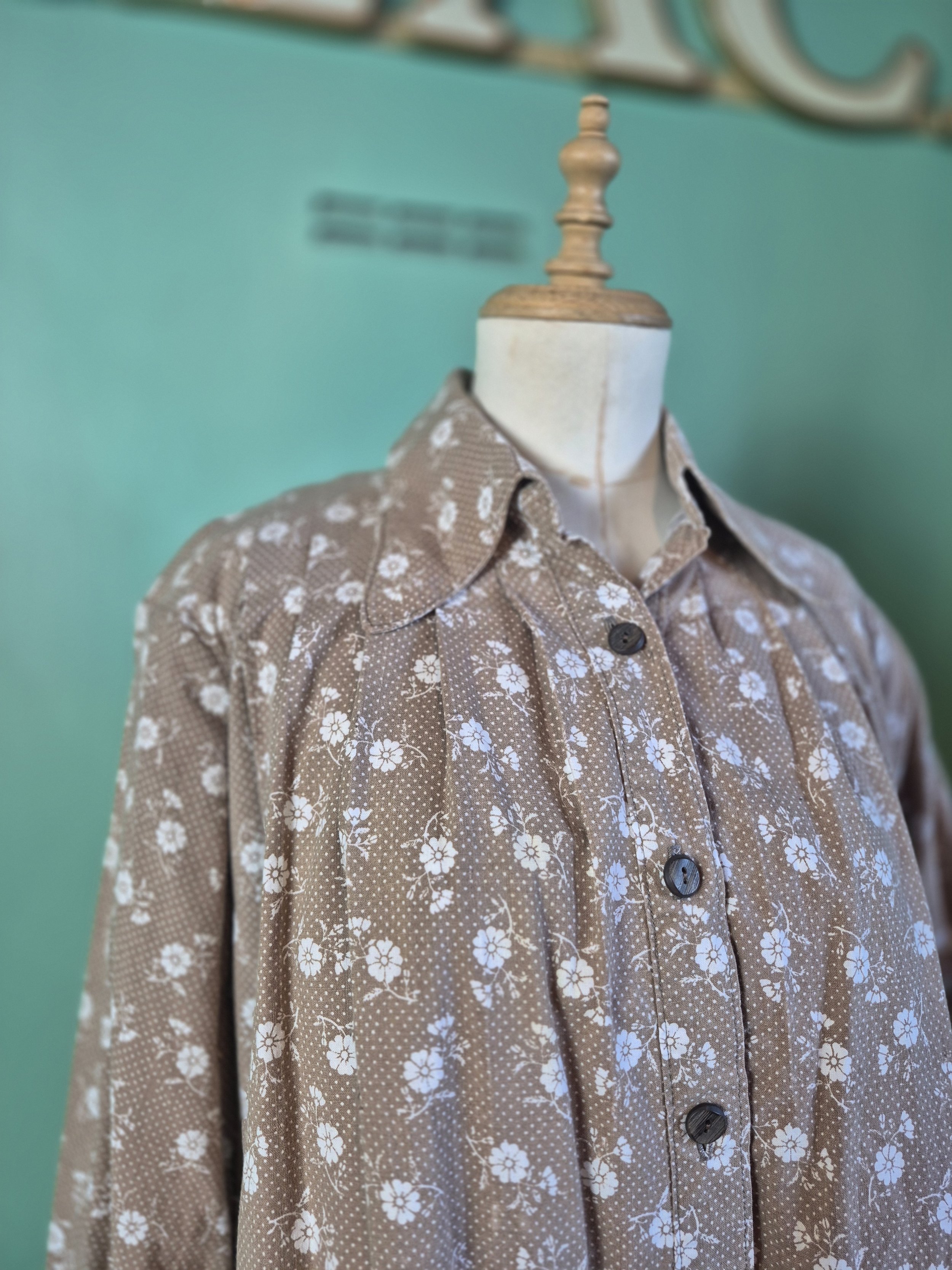 This dress is pure Droopy and Browns. Huge puff sleeves with turn back cuffs, drop waist, blousey top and full skirt. Just stunning.