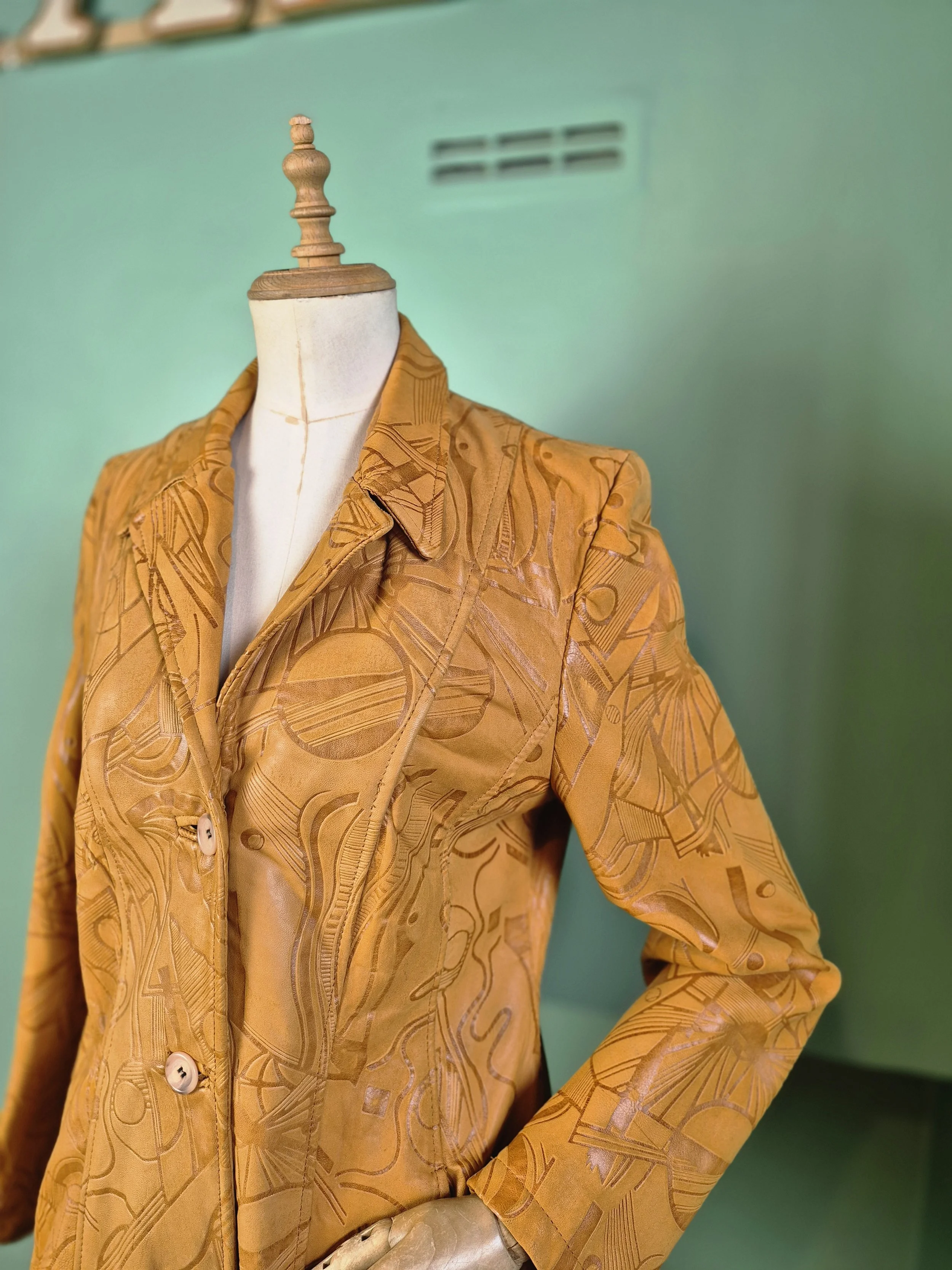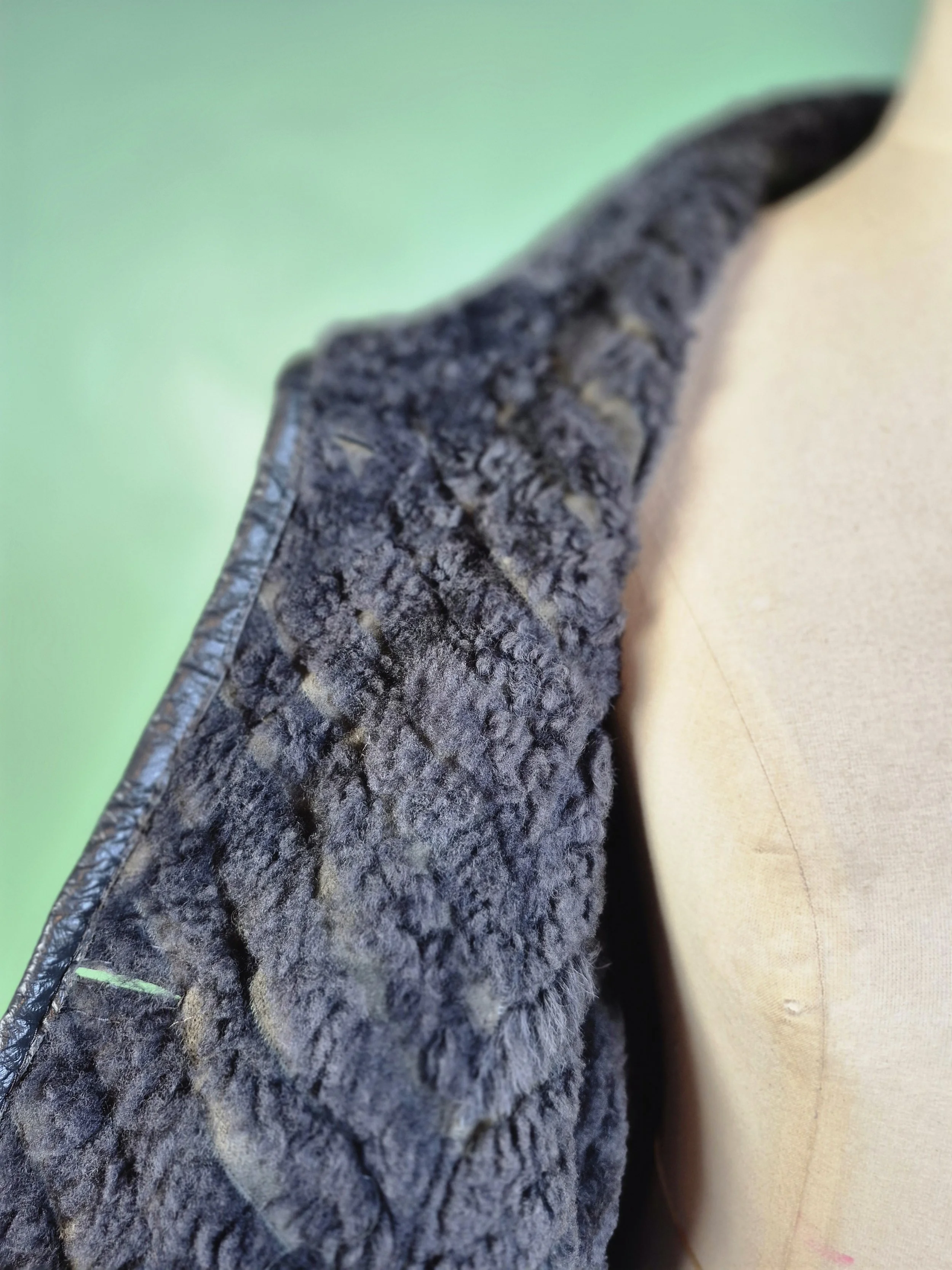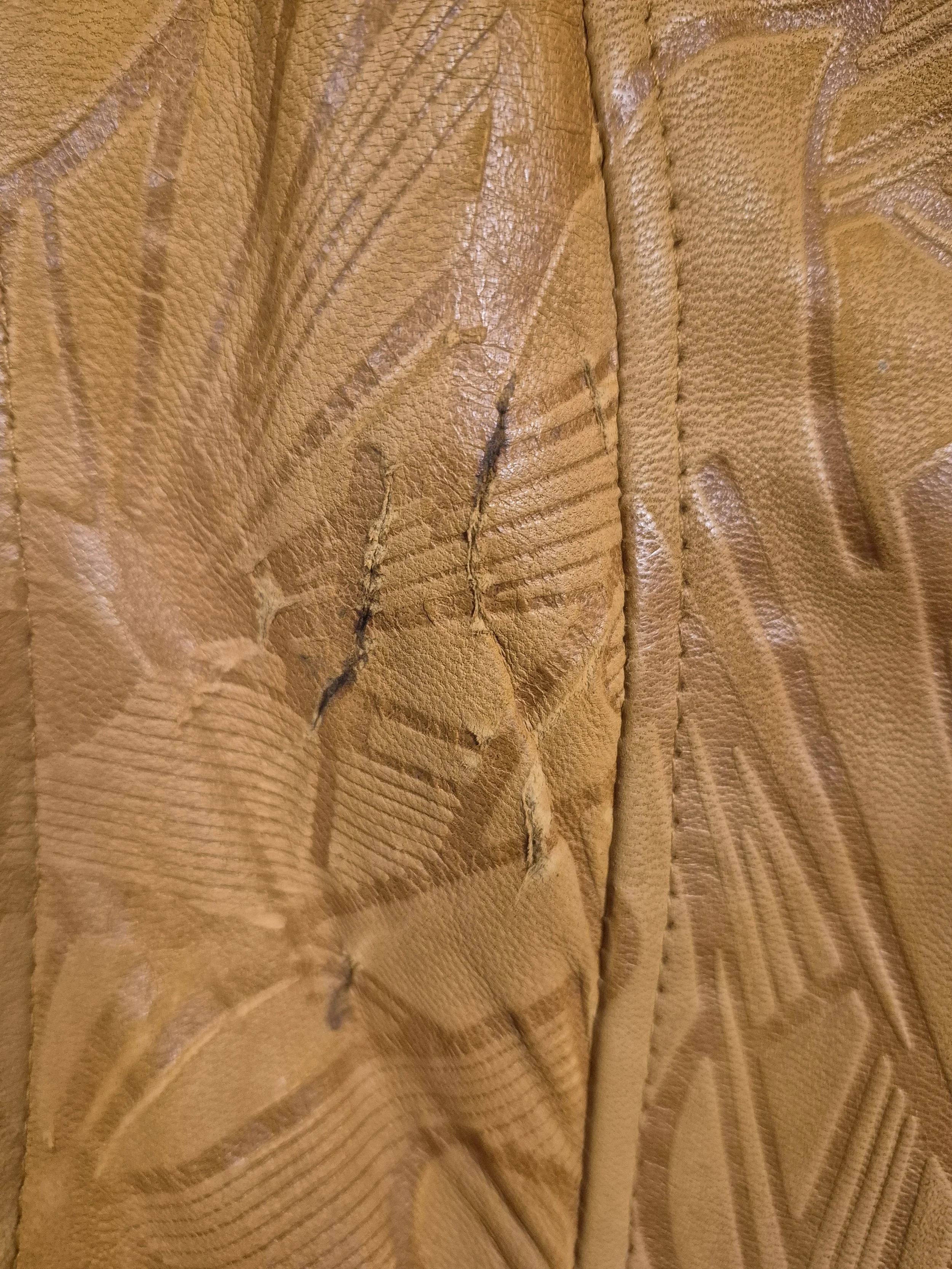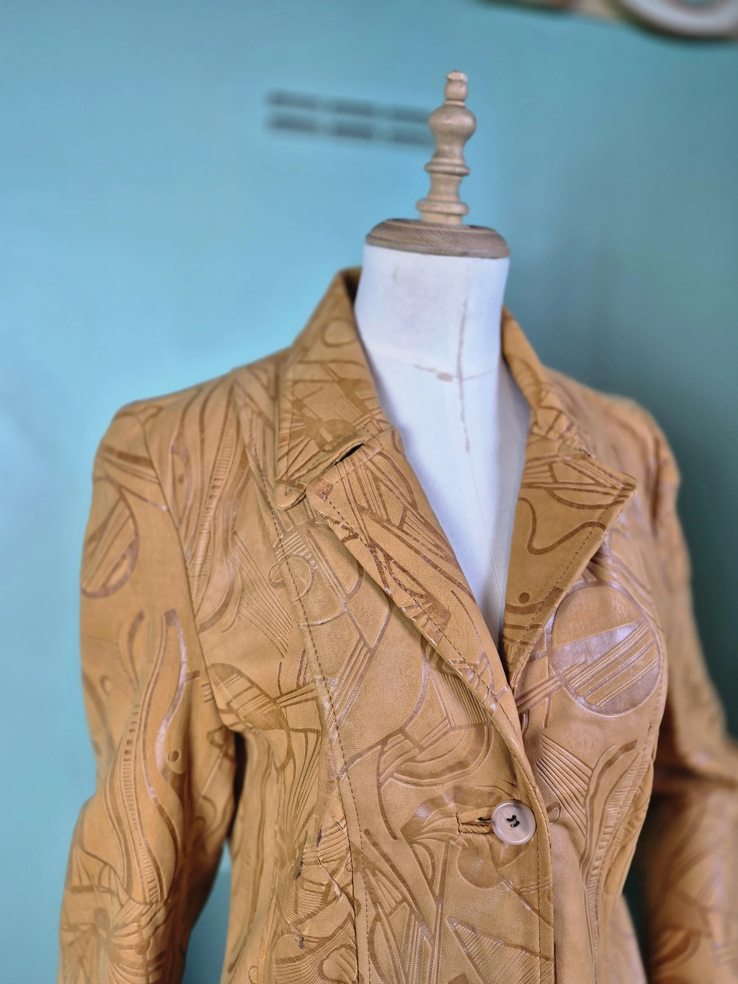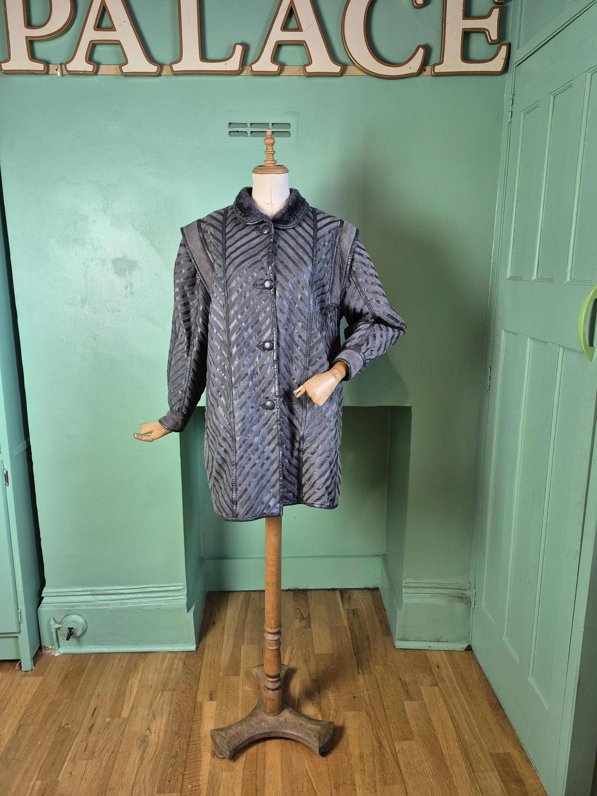 This is a gorgeous stripe design suede and poss leather coat. Faux for lined so super snuggly.