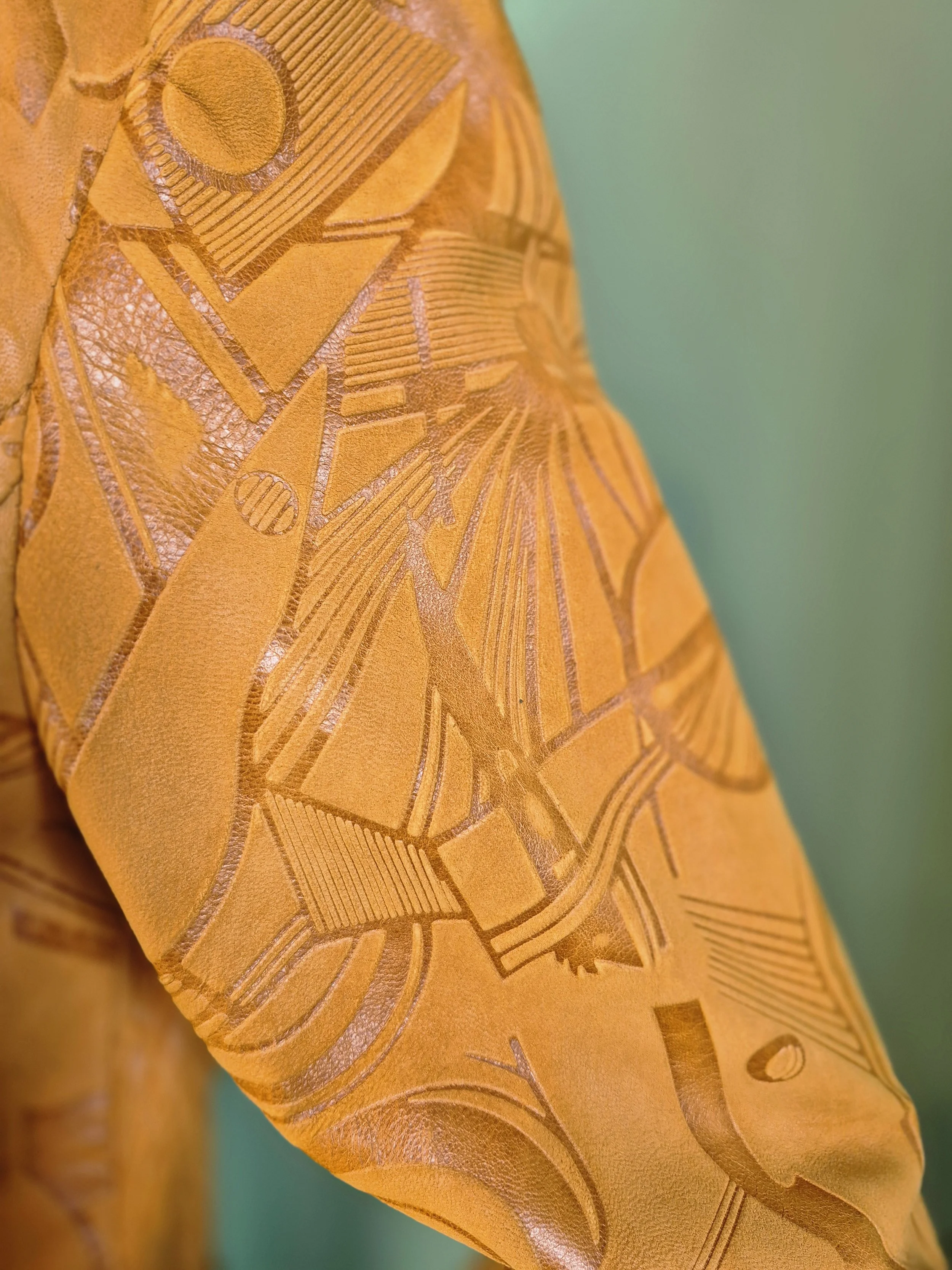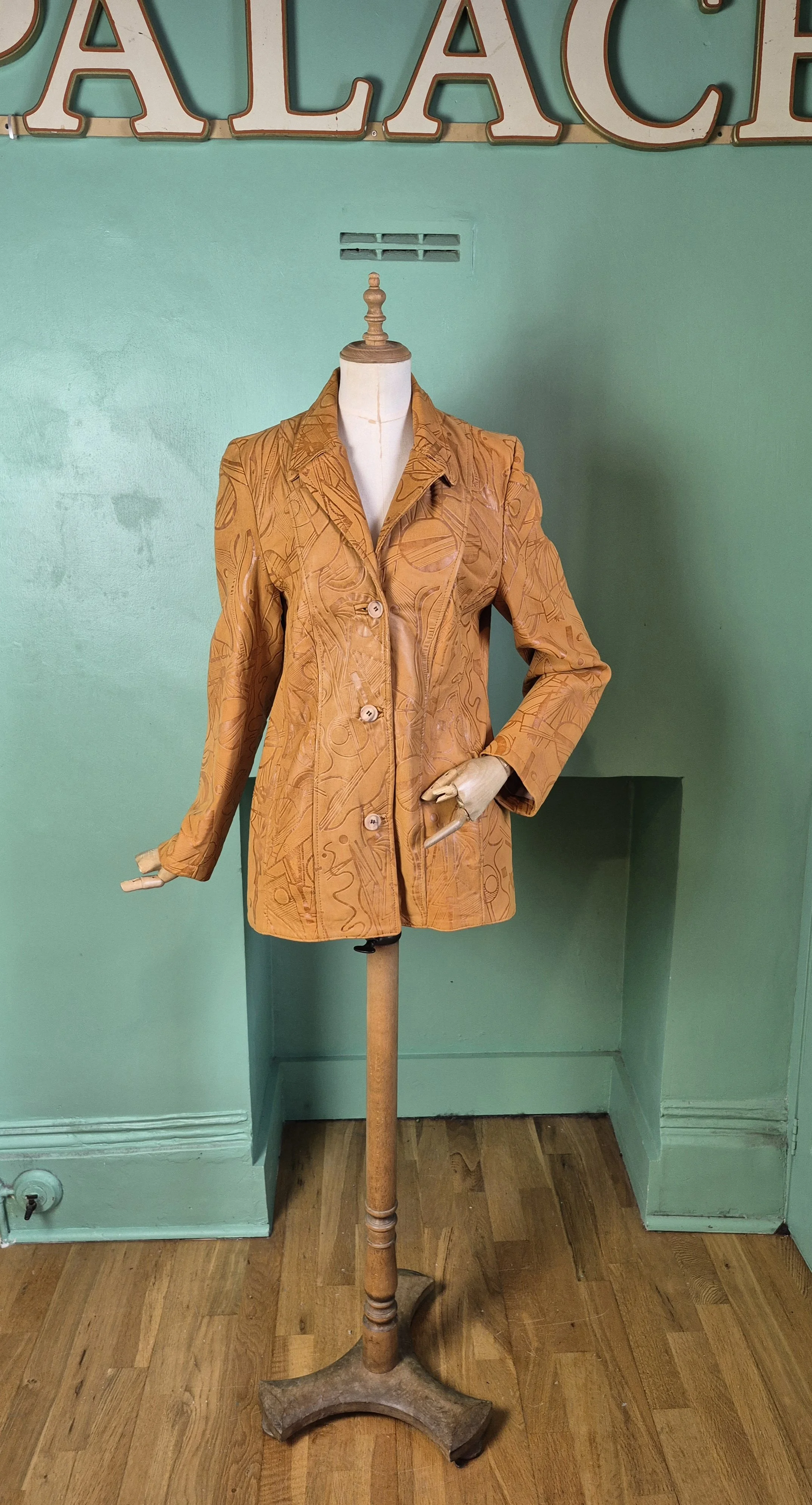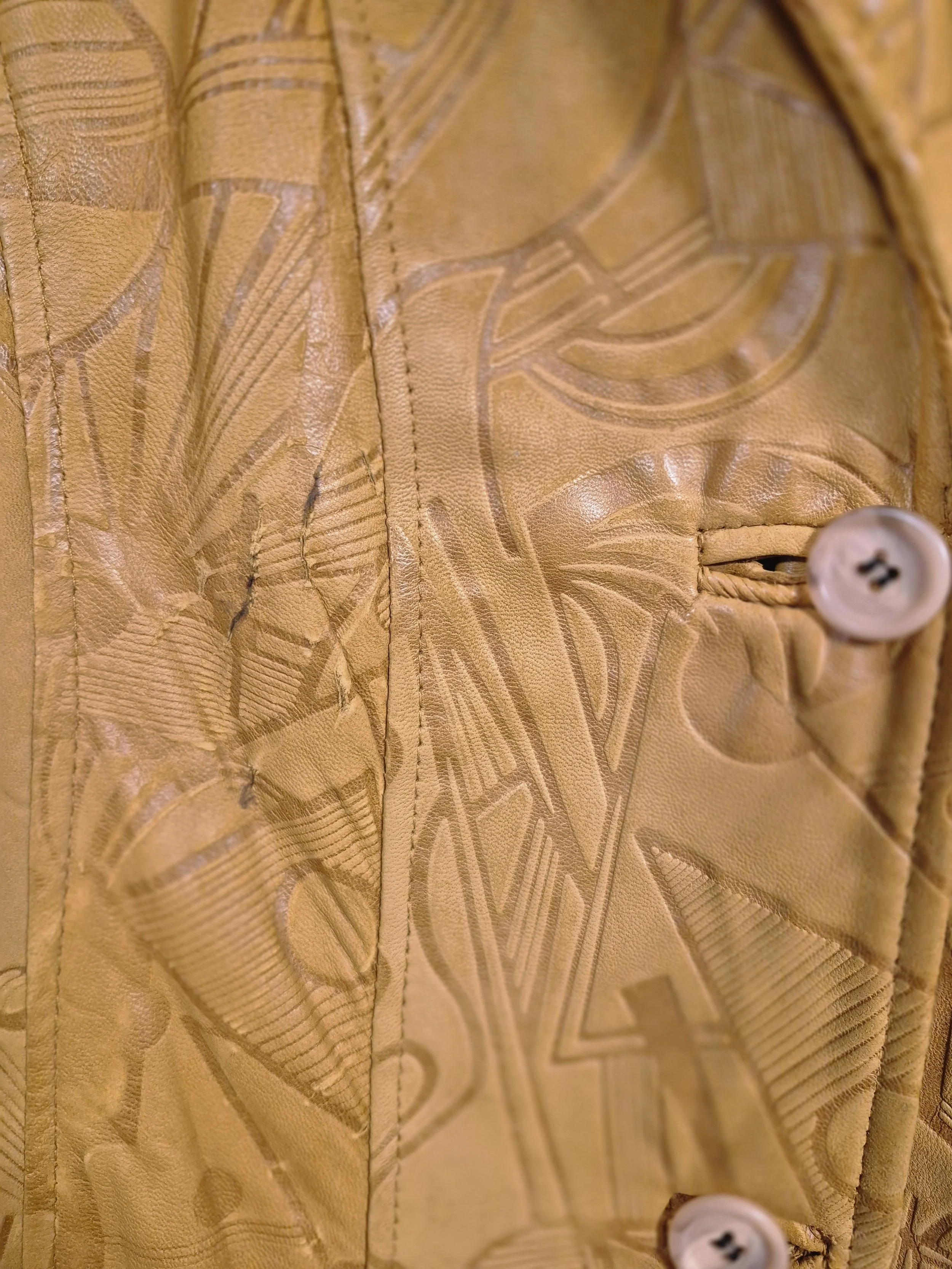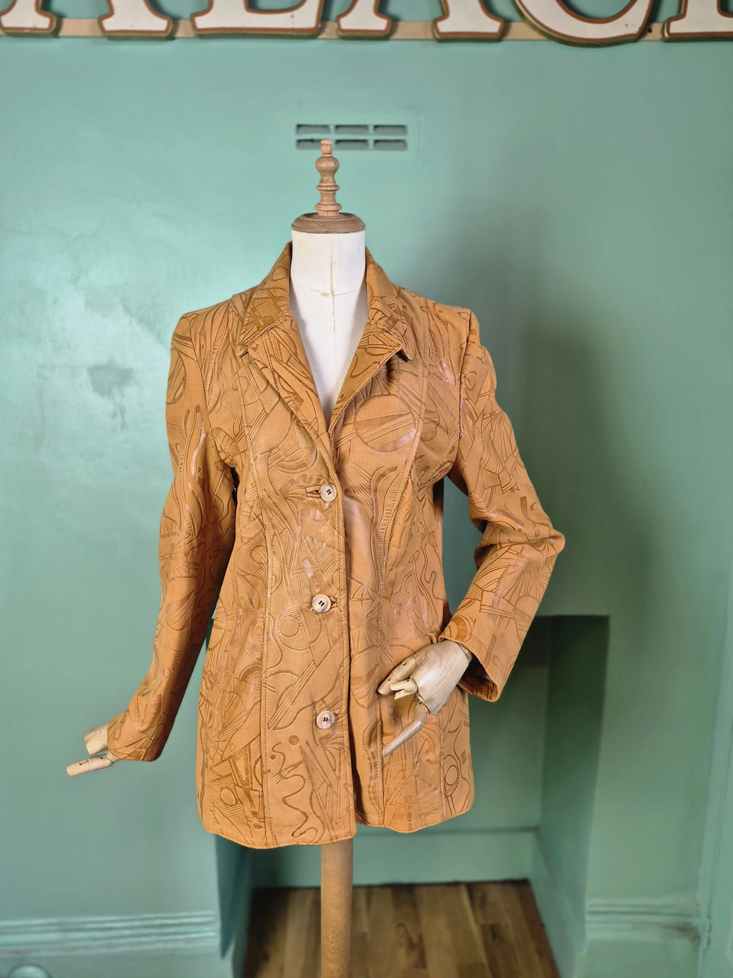This is a gorgeous stripe design suede and poss leather coat. Faux for lined so super snuggly.
